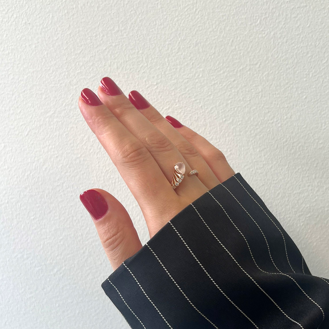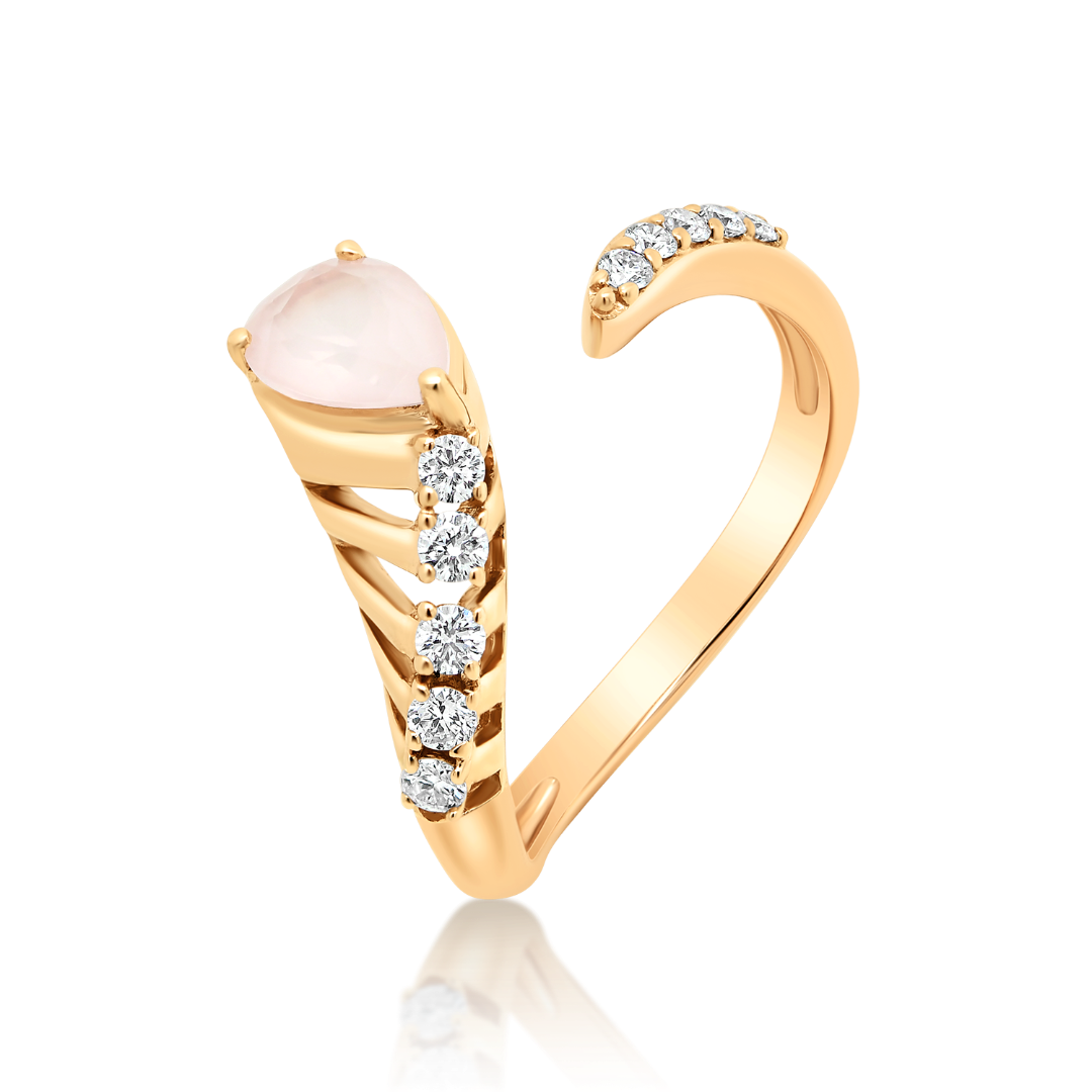 Inel din aur roz de 18K cu Diamante naturale și Quartz
