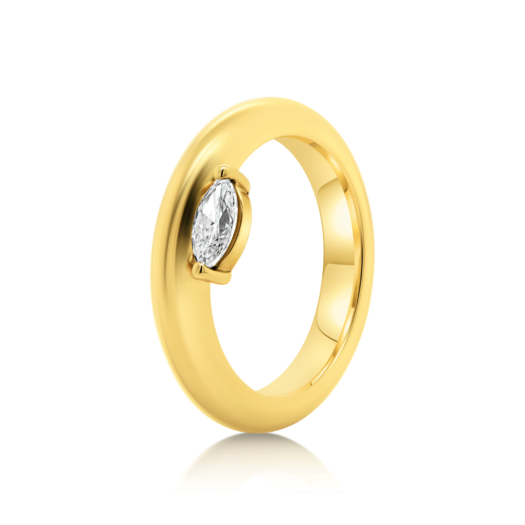 Inel din aur galben de 18K cu Diamant Marquise natural