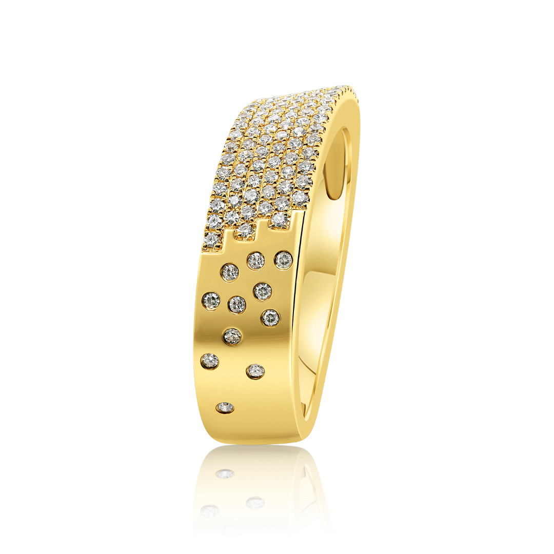 Inel din aur galben de 18K, încrustat cu 116 Diamante naturale Round Brilliant cu o greutate totală de 0.32ct.