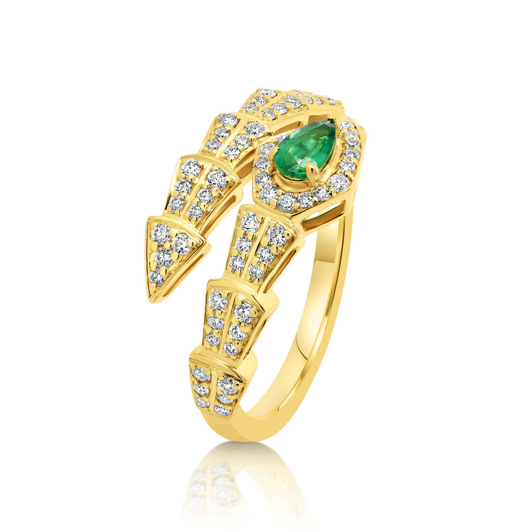 Inel din aur galben de 18K, încrustat cu un Smarald de 0.20ct și 69 de Diamante Brilliant cut de 0.38ct.