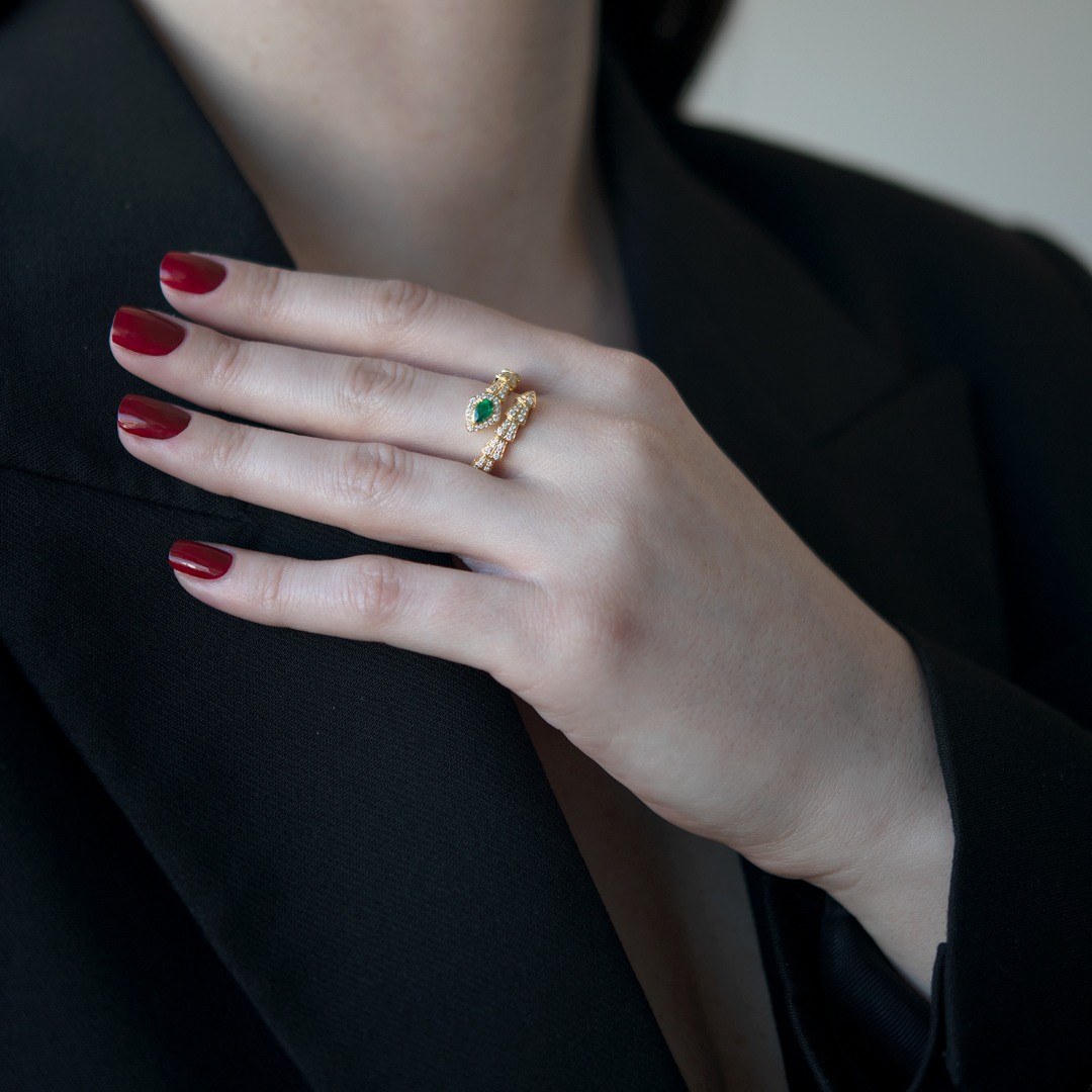 Inel din aur galben de 18K cu Smarald și Diamante naturale