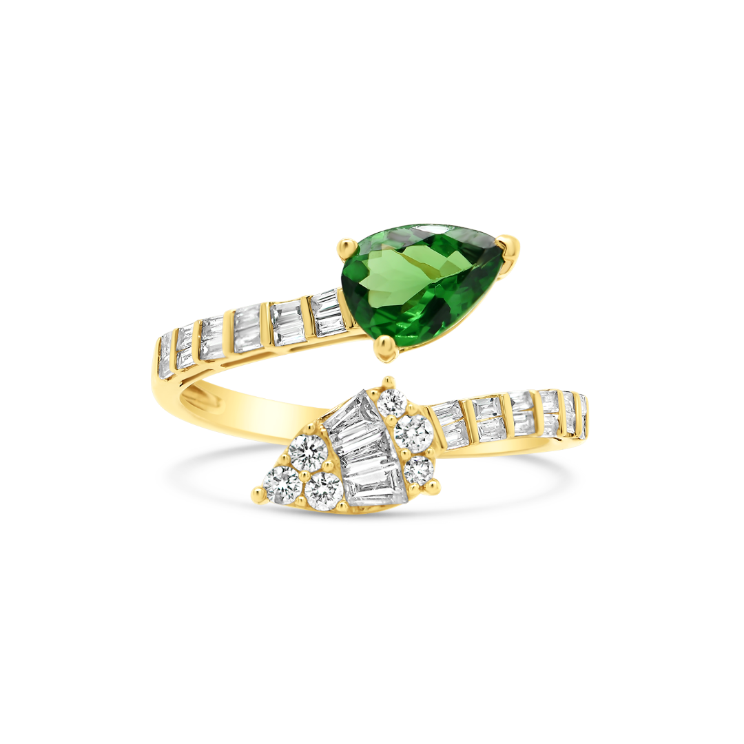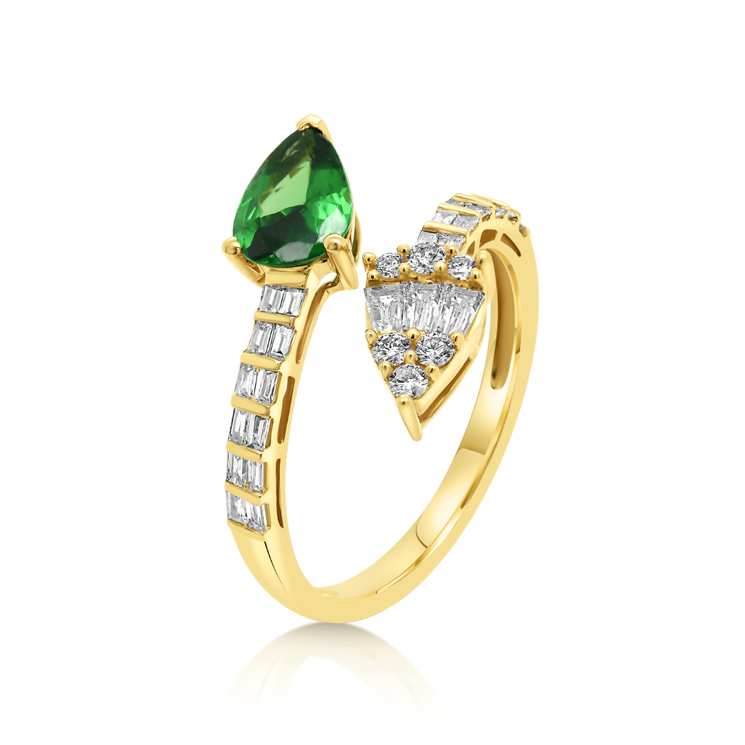 Inel din aur galben de 18K cu Tsavorit și Diamante naturale