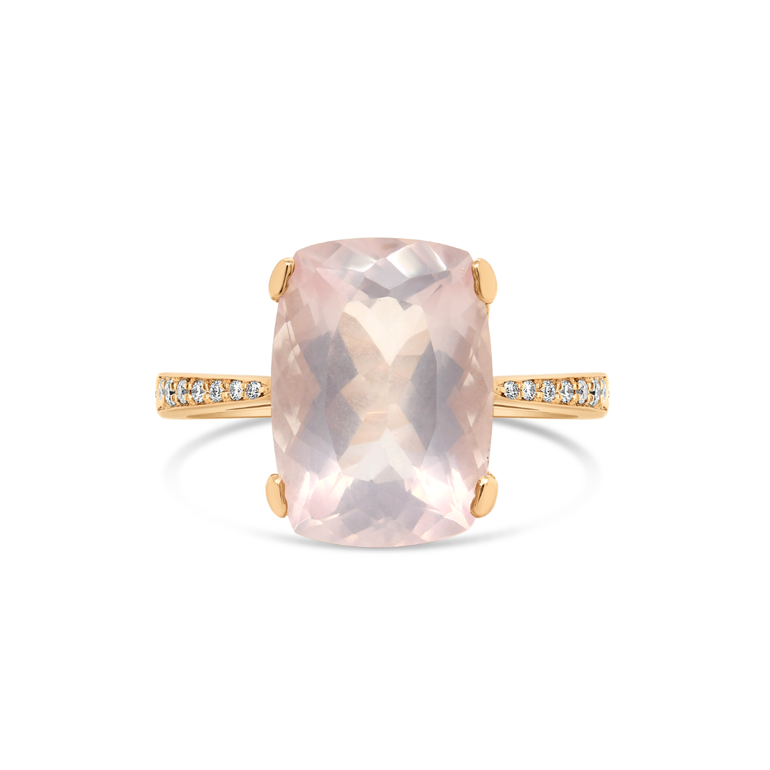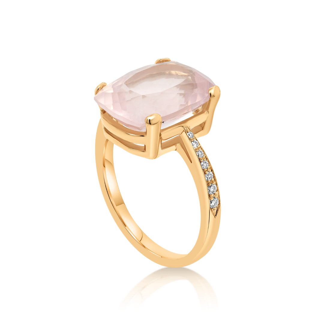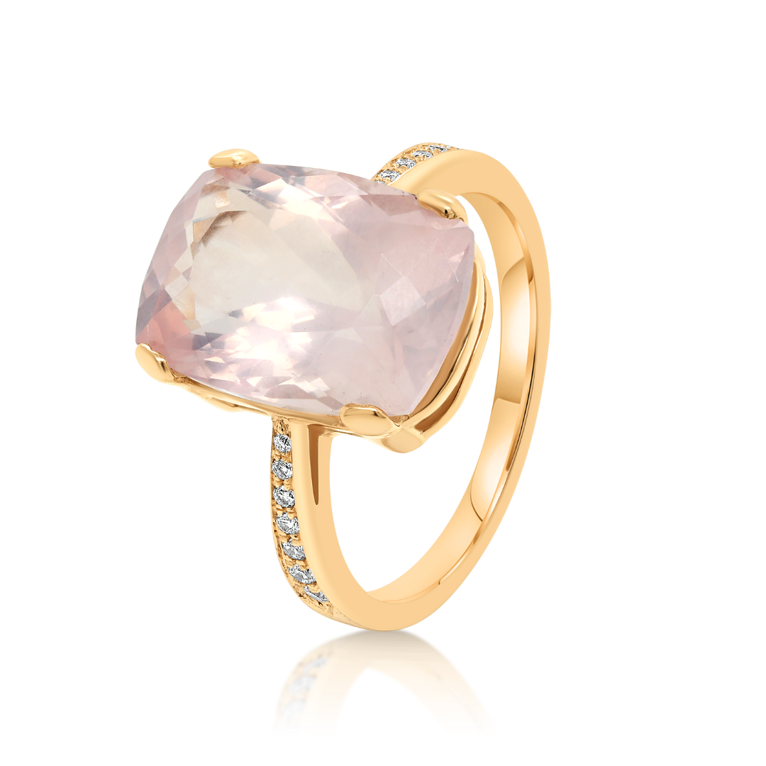 Inel din aur roz de 14K cu pink Quartz și Diamante naturale