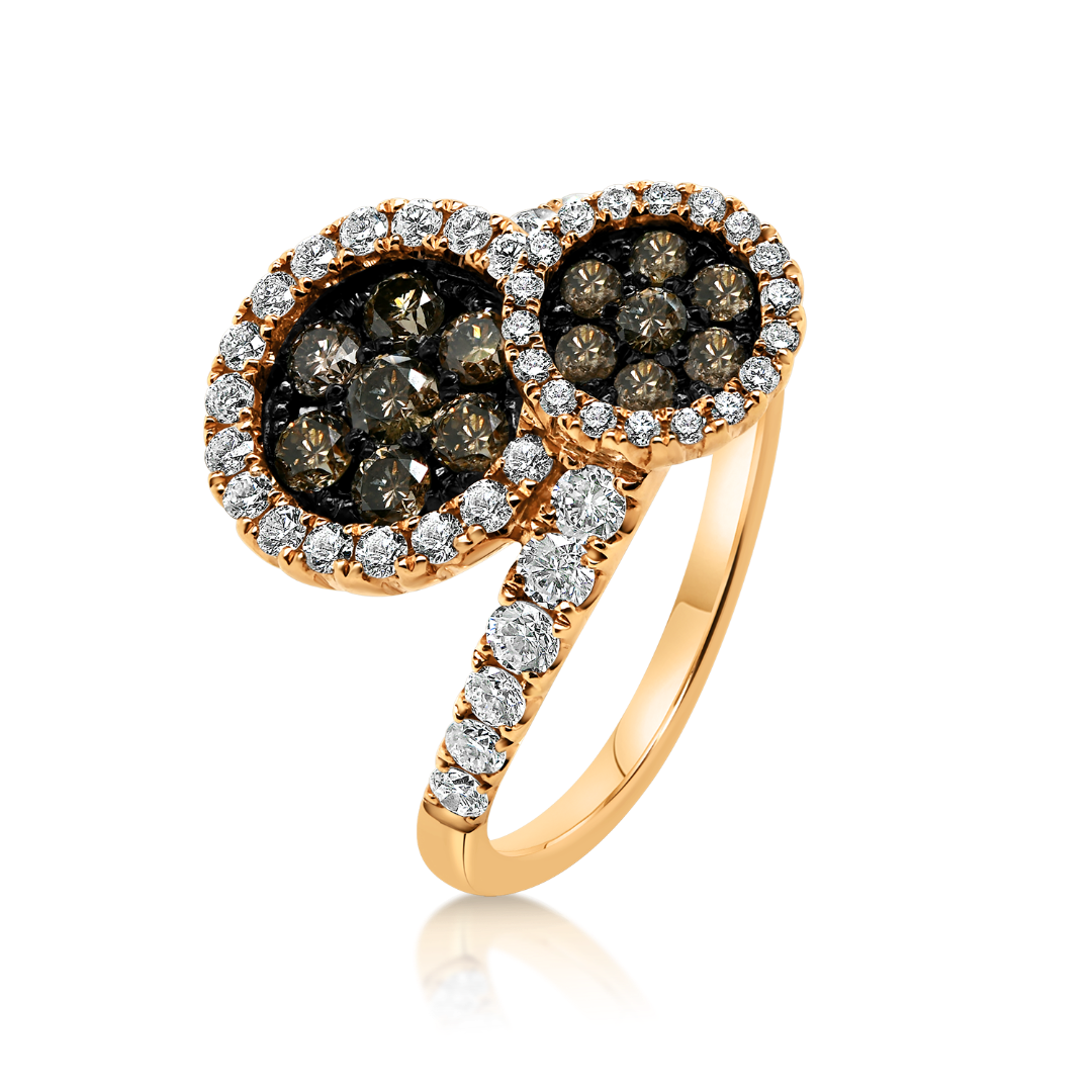Inel din aur roz de 18K, încrustat cu Diamante incolore de 0.57ct și Diamante Champagne de 0.50ct.