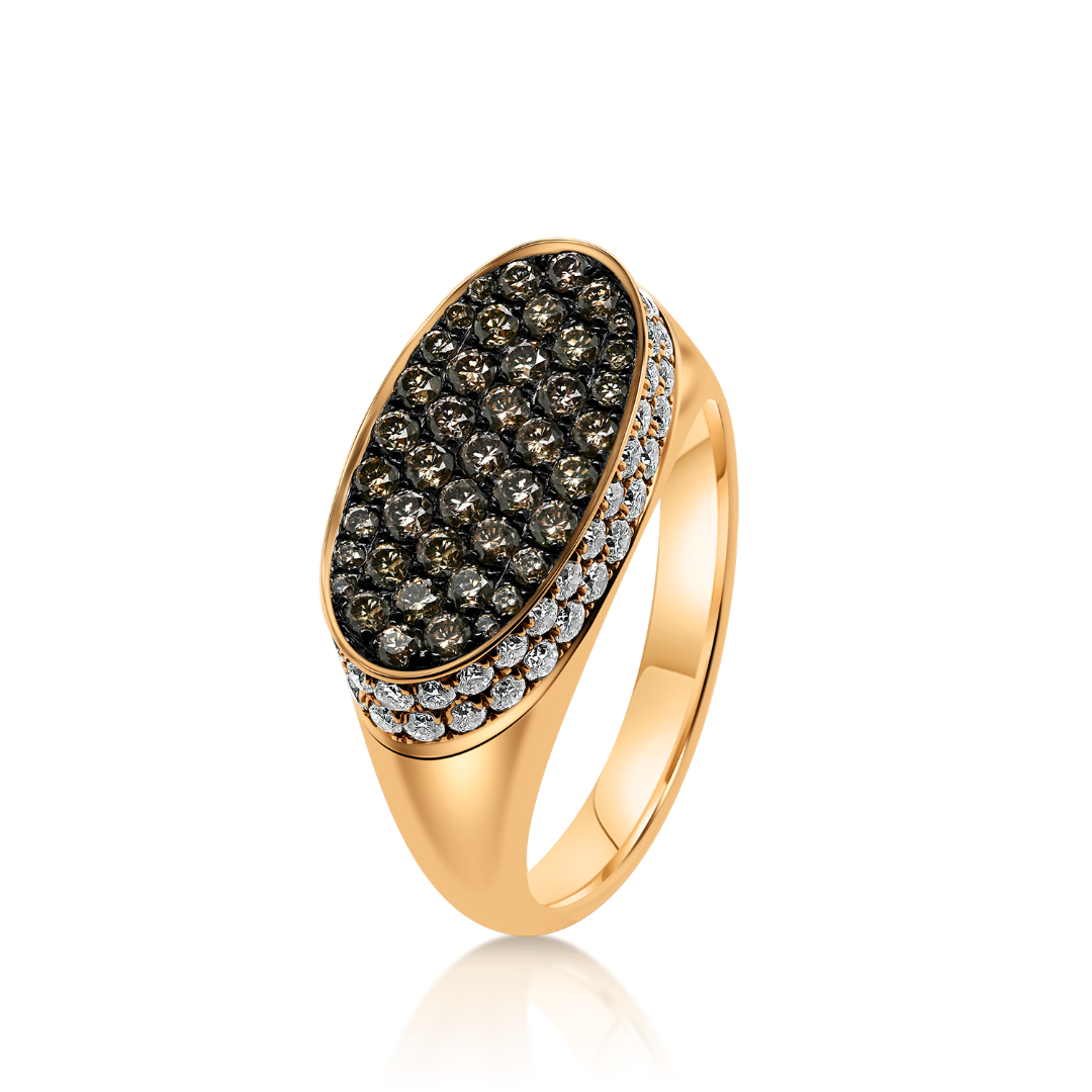 Inel din aur roz de 18K, încrustat cu Diamante naturale incolore de 0.57ct și Diamante Champagne de 0.57ct.