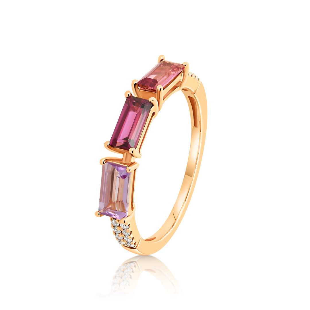 Inel din aur roz de 18K cu Diamante naturale, Granat, Turmalin și Ametist