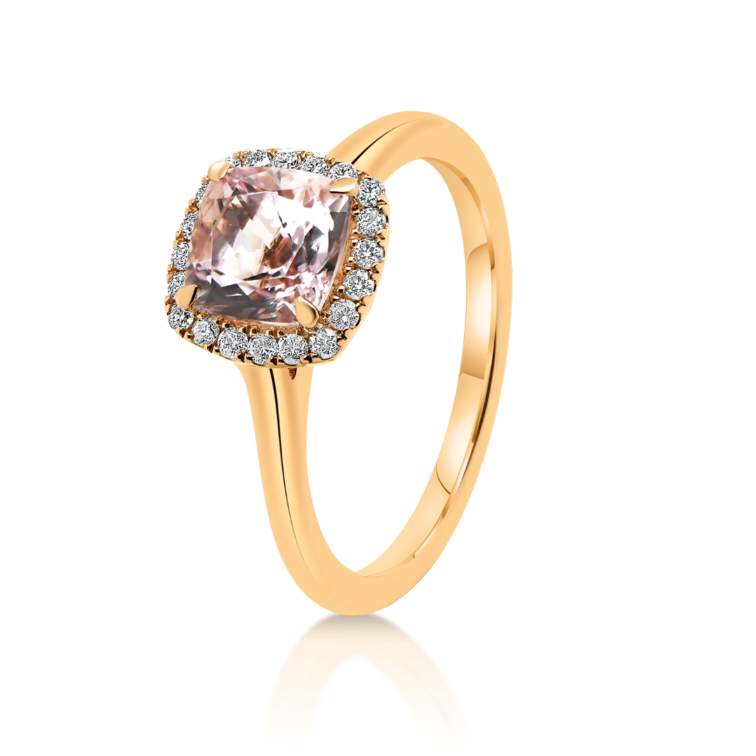 Inel din aur roz de 18K, cu Diamante și piatră Morganit