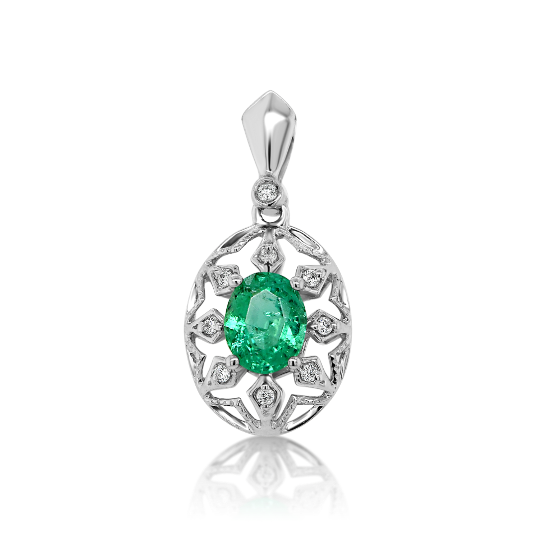 Pandantiv din aur alb de 18K cu Diamante și Smarald
