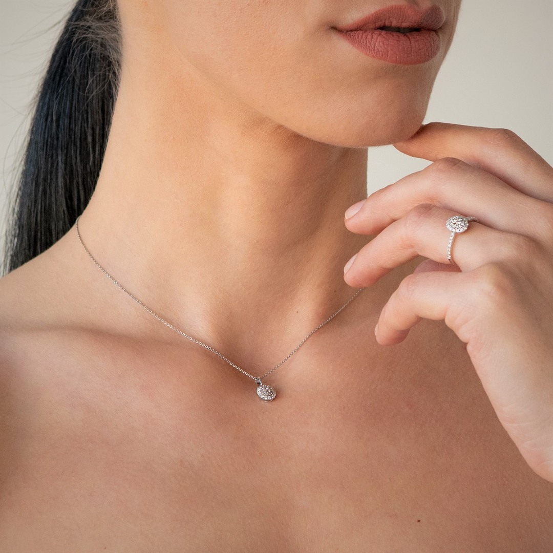 Pandantiv din aur alb de 18K cu 19 Diamante Round Brilliant naturale de 0.420ct.