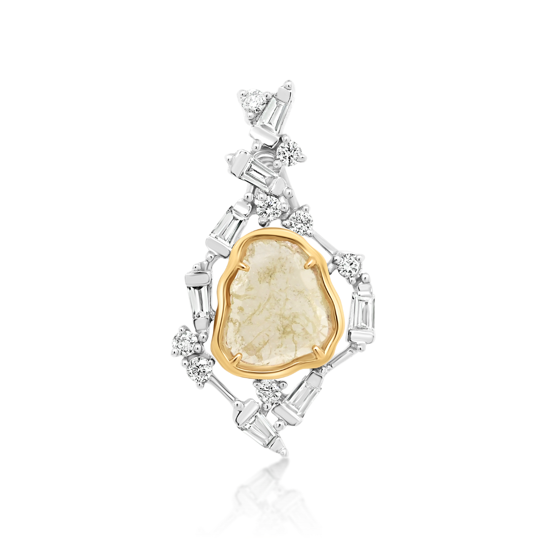 Pandantiv din aur alb de 18K cu Diamante naturale și Quartz.