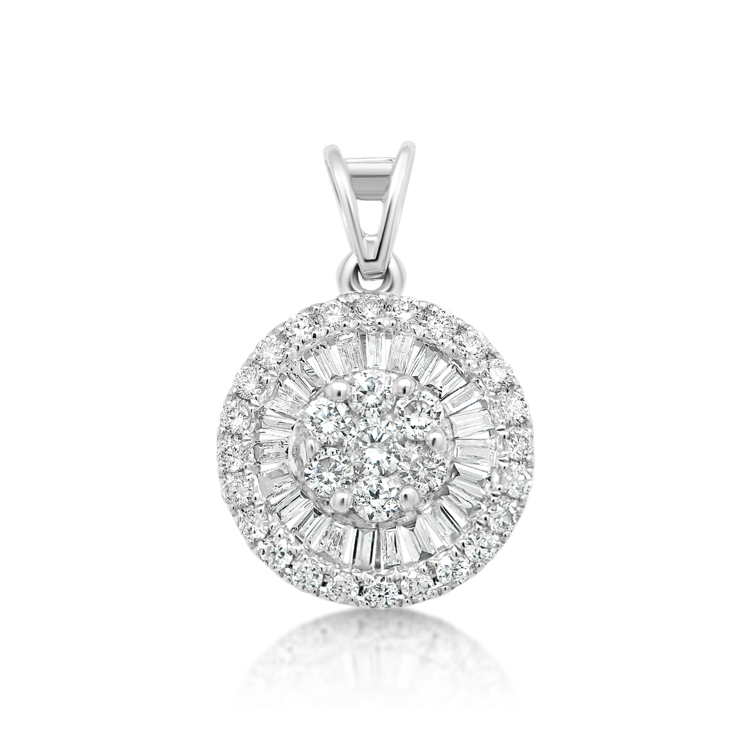 Pandantiv din aur alb de 18K cu Diamante naturale Round Brilliant și Baguette.