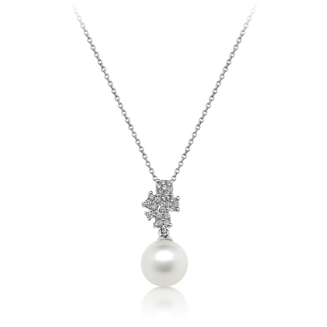 Pandantiv din aur alb de 18K, cu Diamante și Perlă