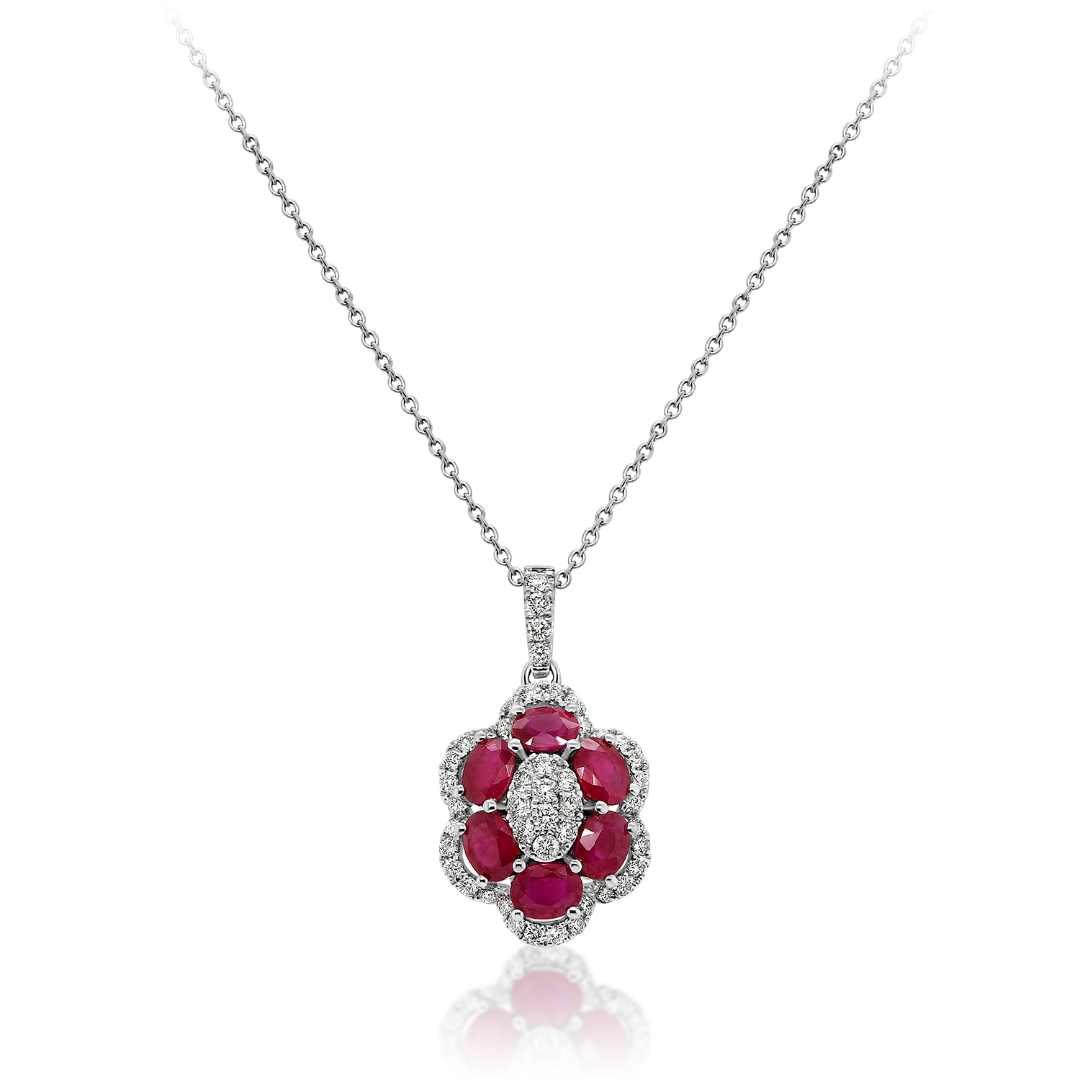 Pandantiv din aur alb de 18K cu Rubine și Diamante, naturale