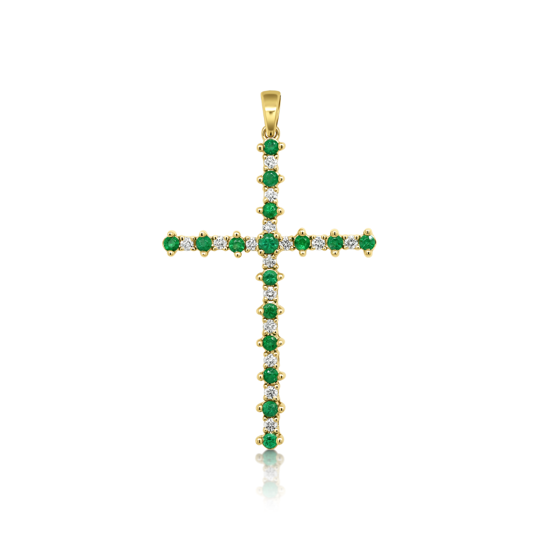 Pandantiv din aur galben de 14K cu Smaralde și Diamante naturale