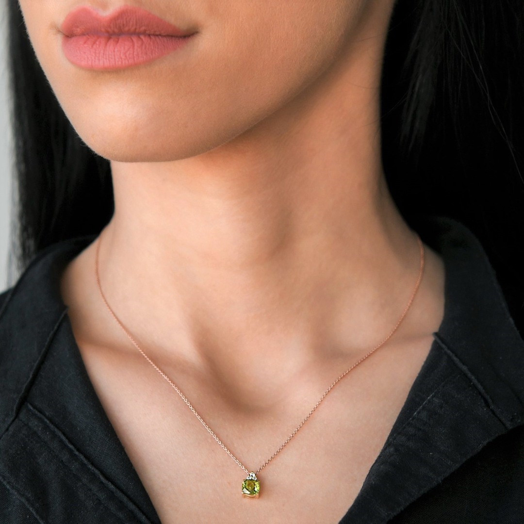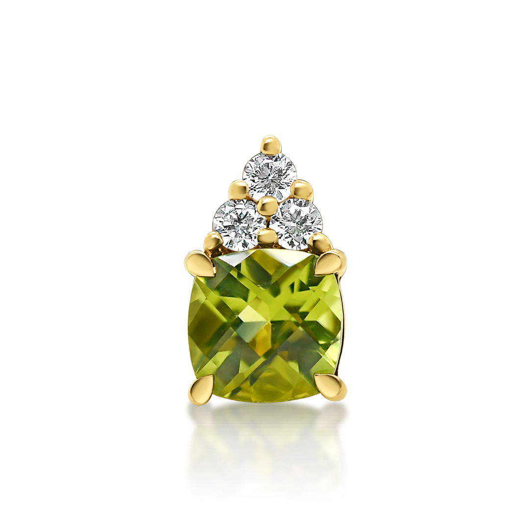 Pandantiv din aur galben de 18K, încrustat cu 3 Diamante de 0.08ct. și o piatră Peridot de 1.06ct.