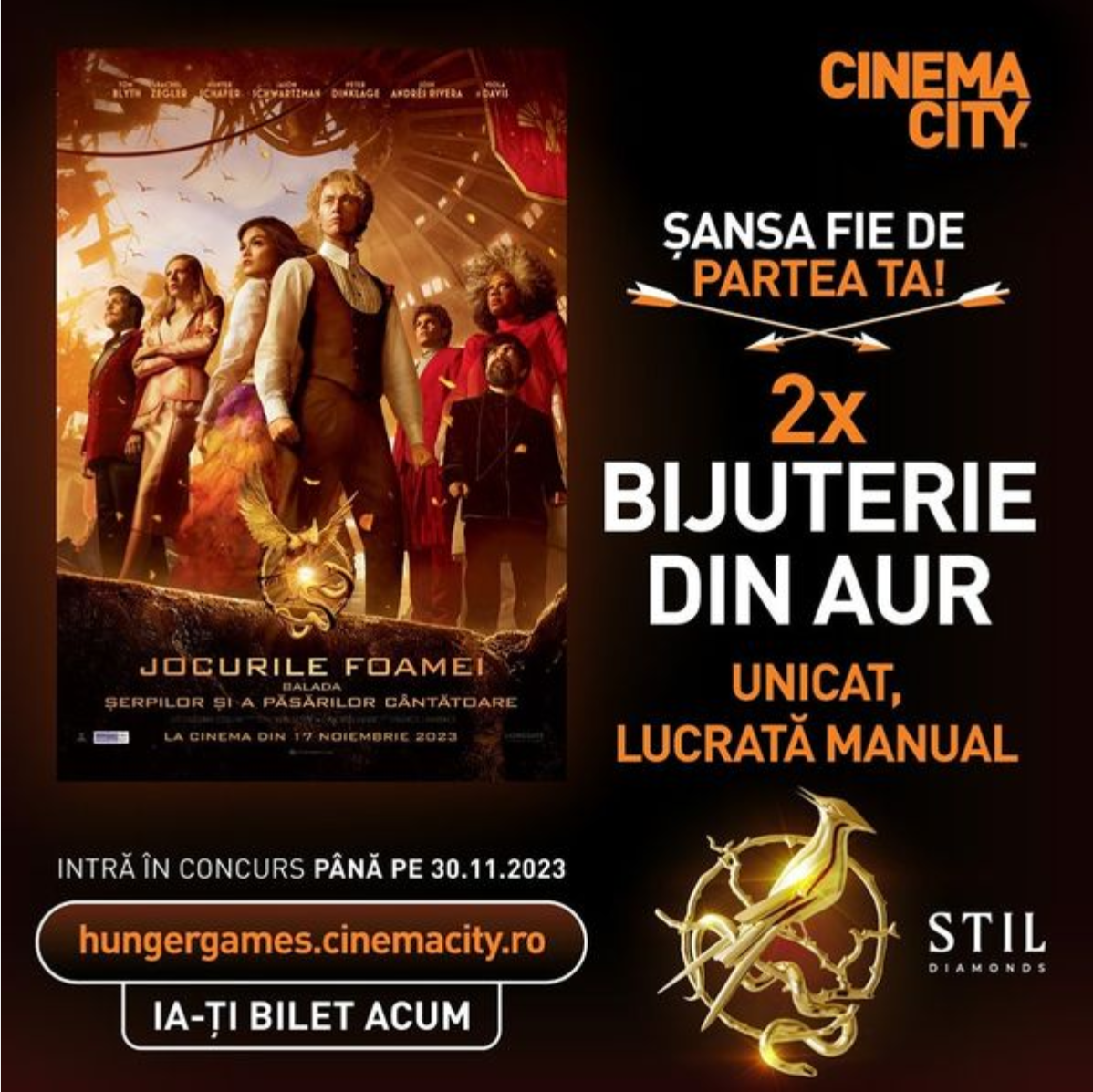 Cu ocazia premierei filmului Hunger Games, Balada Șerpilor și a păsărilor cântătoare la CINEMACITY, bijutierii STIL Diamonds au demonstrat că nu existe limite atunci când vine vorba de creații unice, realizate manual, chiar în atelierul din Râmnicu Vâlcea.