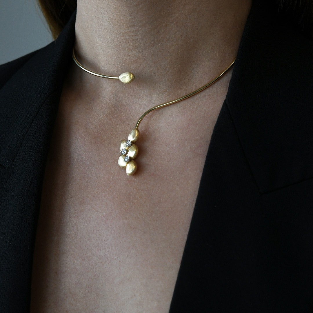 Suprafețele ușor abrazate, prelucrate cu măiestrie în atelierul STIL Diamonds din Râmnicu Vâlcea, dezvăluie o strălucire delicată, asemenea razelor de soare ce mângăie nisipul fierbinte al desertului. Rezultatul? Bijuterii cu o aură eterică, sclipiri și forme memorabile.