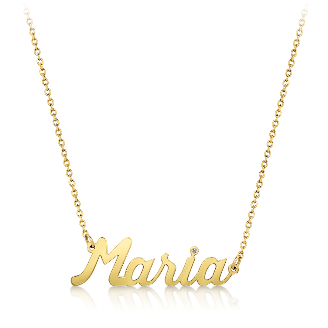 Colierele din aur cu pandantiv nume sunt realizate în întregime în cadrul atelierului STIL Diamonds.