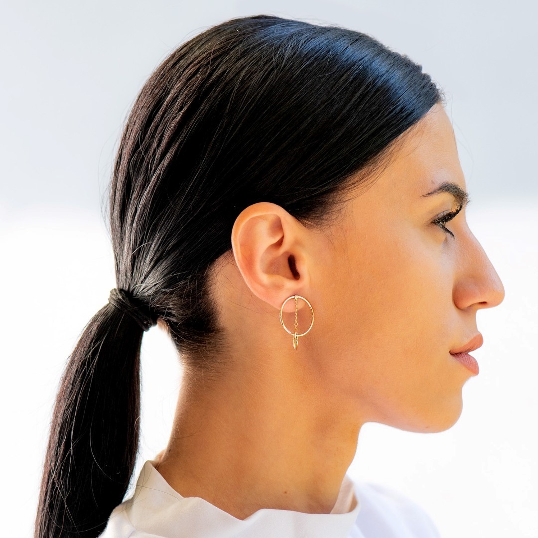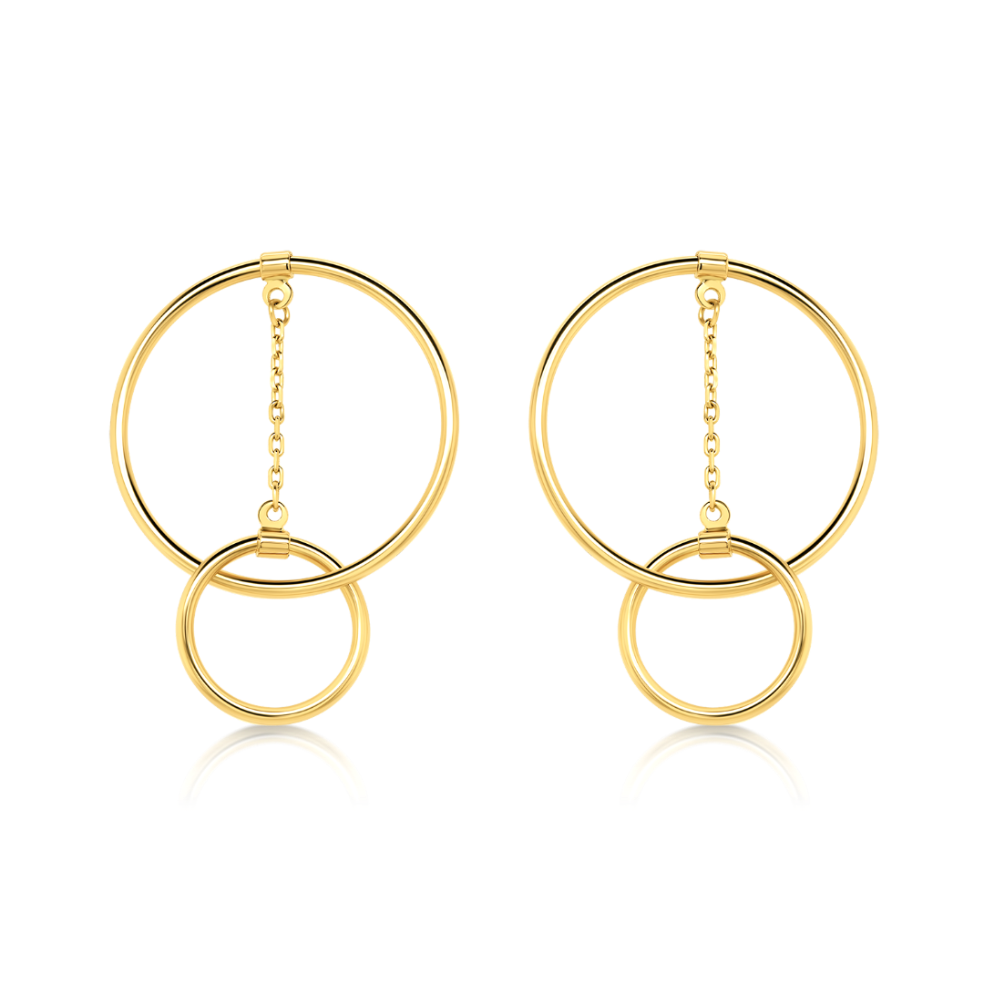 Cercei din aur galben de 14K cu elemente rotunde.