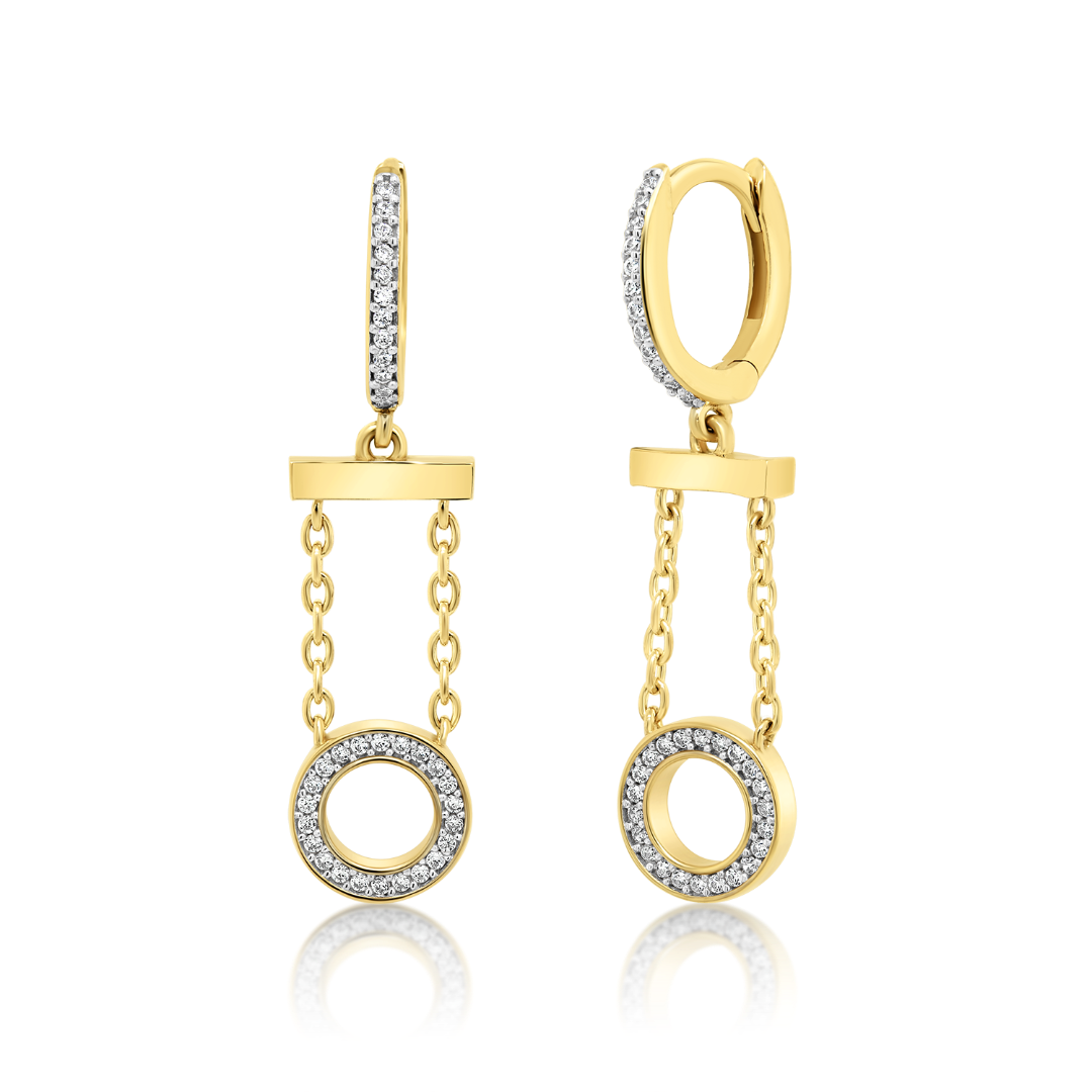 Cercei din aur galben de 14K cu pietre cubic zirconia.
