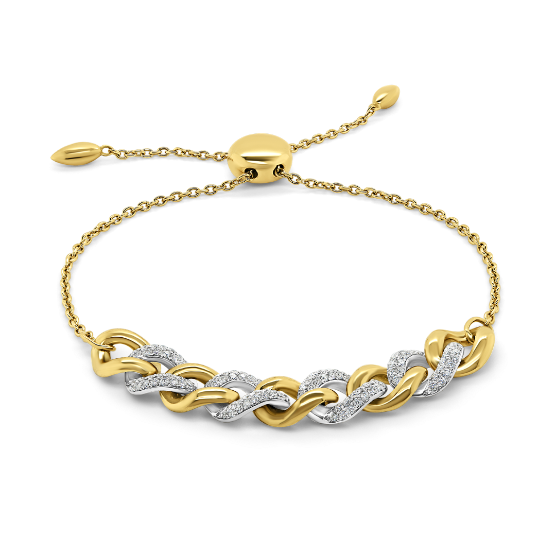 Brățară reglabilă din aur galben de 18K, cu elemente din aur alb încrustate cu 120 Diamante de 0.48ct.