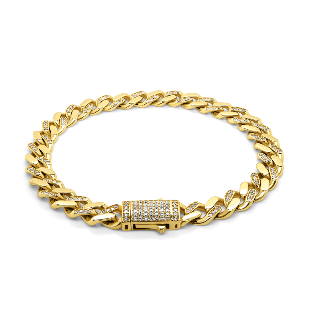 Brățară din aur galben de 14K cu pietre Cubic Zirconia albe.