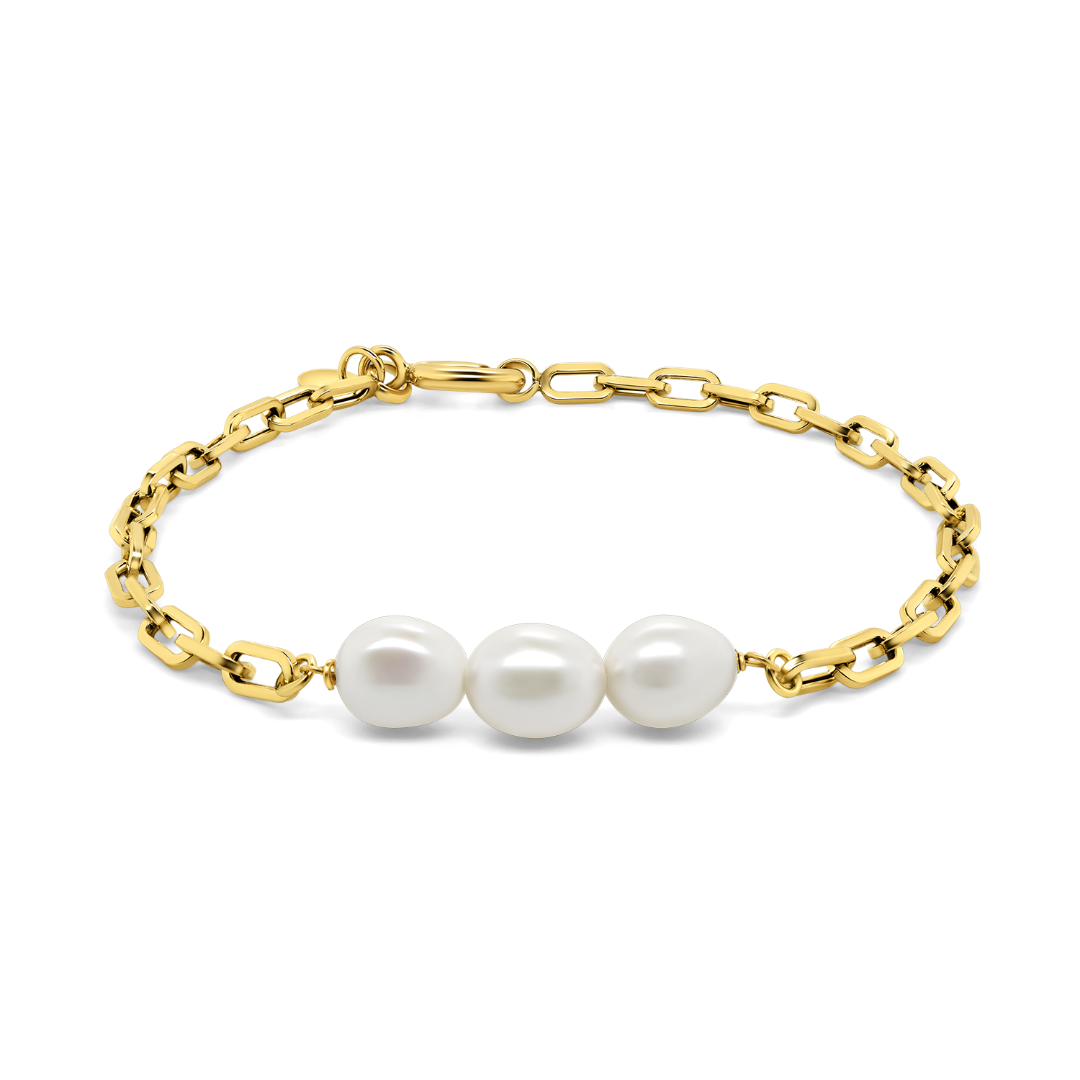 Brățară din aur galben de 14K cu Perle albe de cultură.