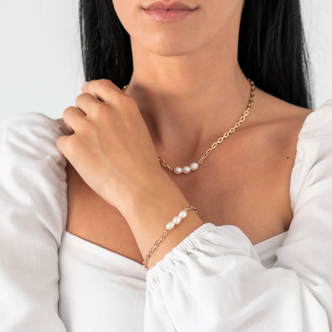Brățară din aur galben de 14K cu Perle
