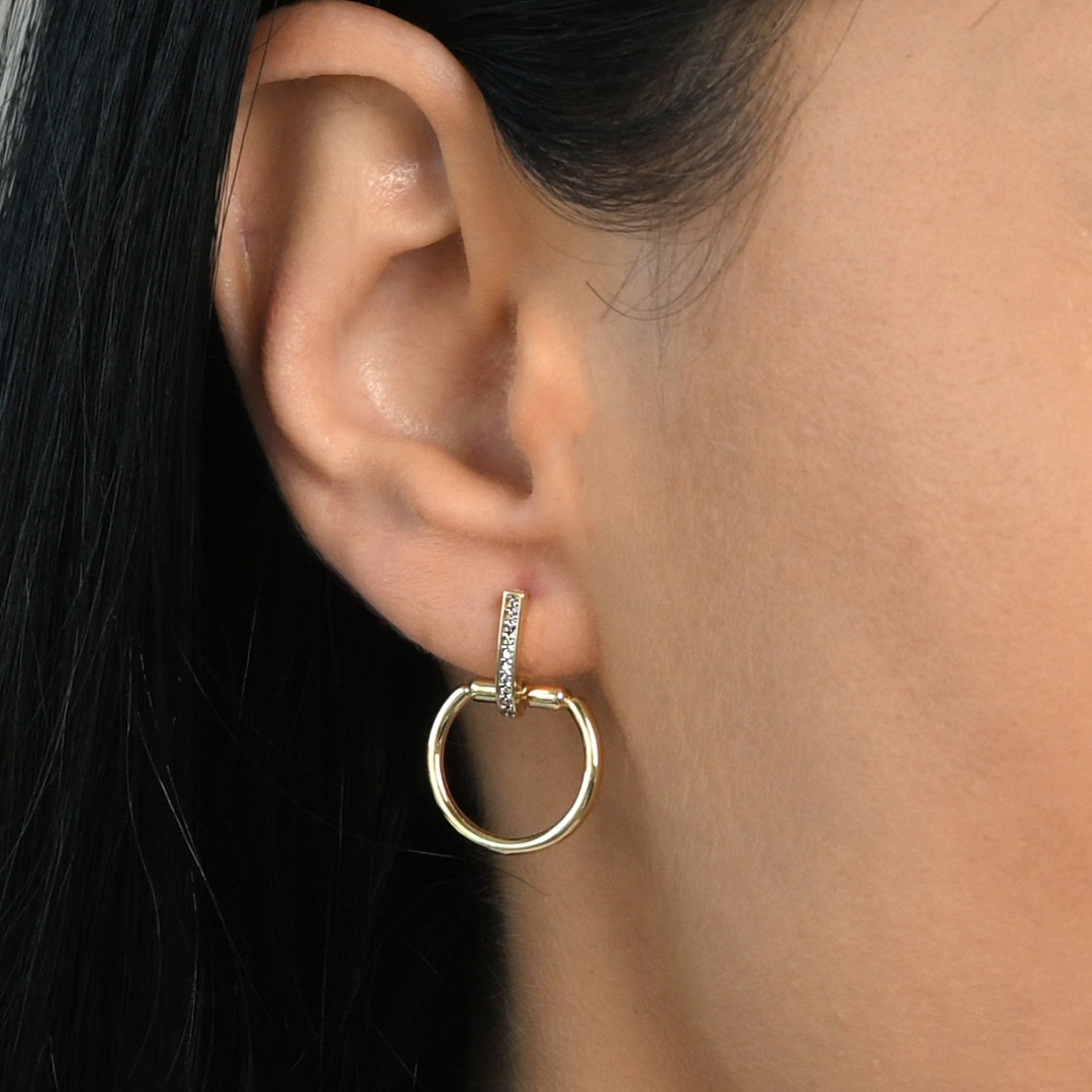 Cercei din aur galben de 14K cu pietre cubic zirconia.