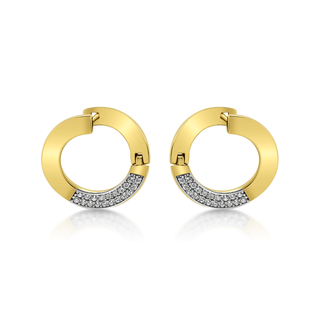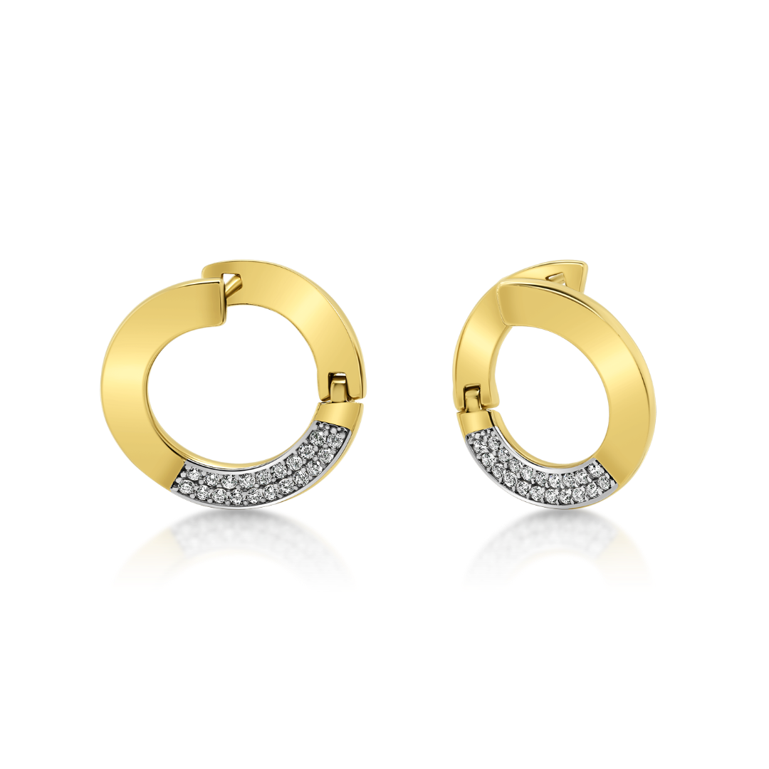 Cercei din aur galben de 14K, cu pietre Cubic Zirconia și rodiu alb.