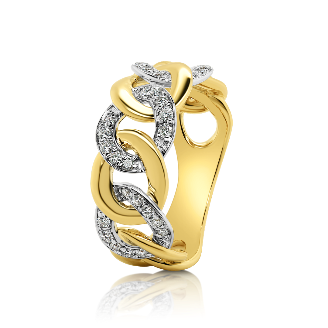 Inel cu design împletit din aur galben de 18K, încrustat cu 30 de Diamante naturale Round Brilliant.