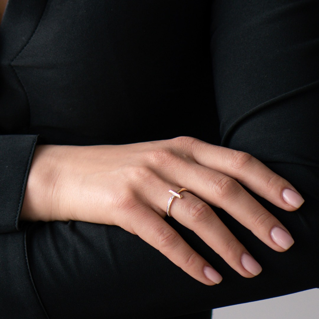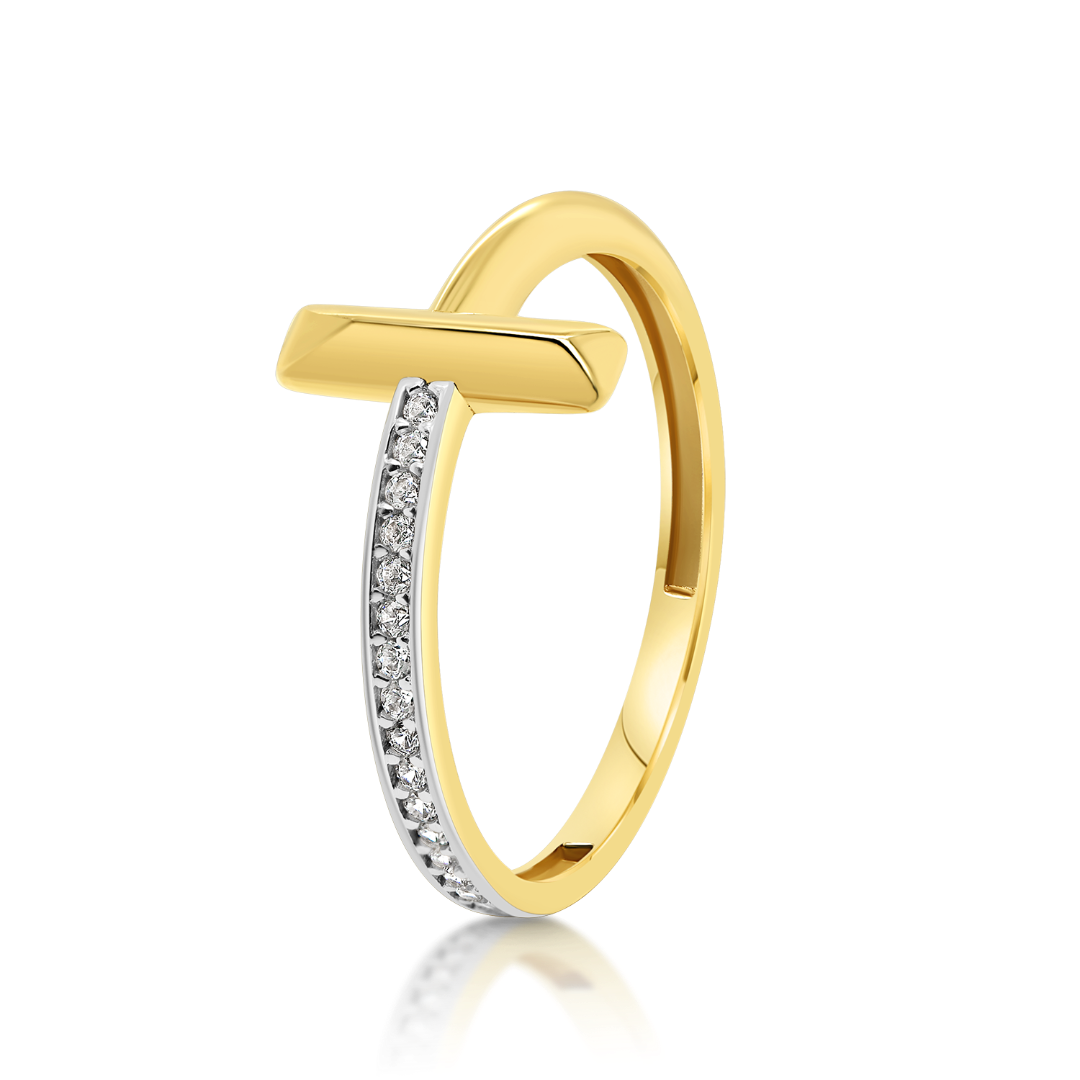 Inel din aur galben de 14K cu pietre Cubic Zirconia și rodiu alb.