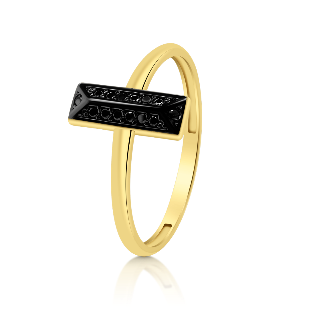 Inel din aur galben de 14K cu rodiu și Zirconia negre.