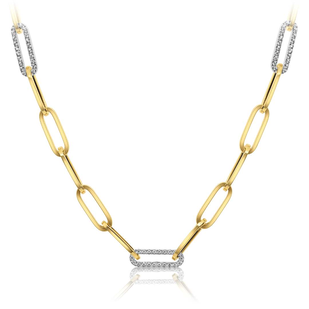Lanț din aur galben de 14K, cu elemente din aur alb și pietre Cubic Zirconia.