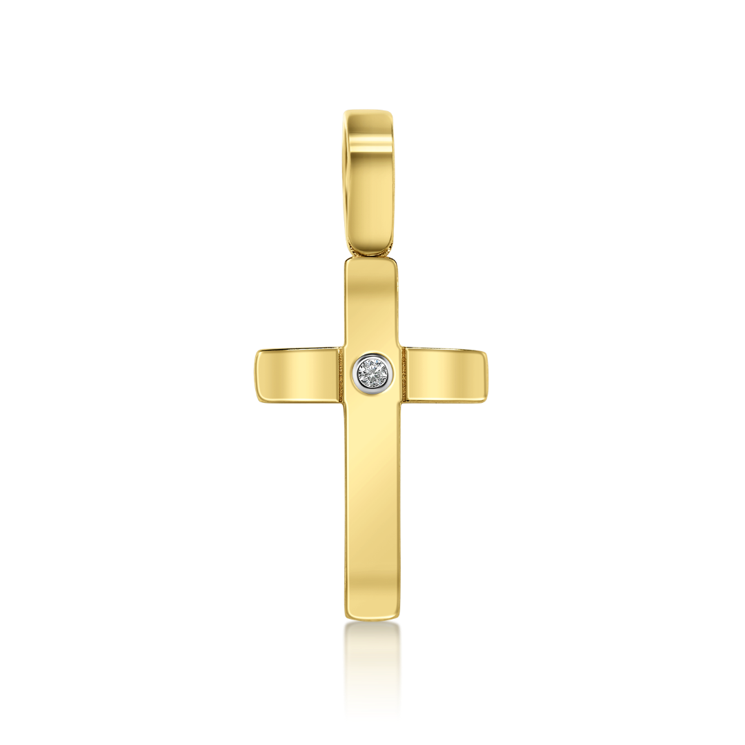 Pandantiv cruce din aur galben de 14K cu piatră Cubic Zirconia.