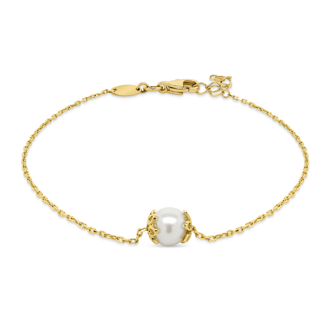 Brățară din aur galben de 14K cu Perlă albă de cultură.