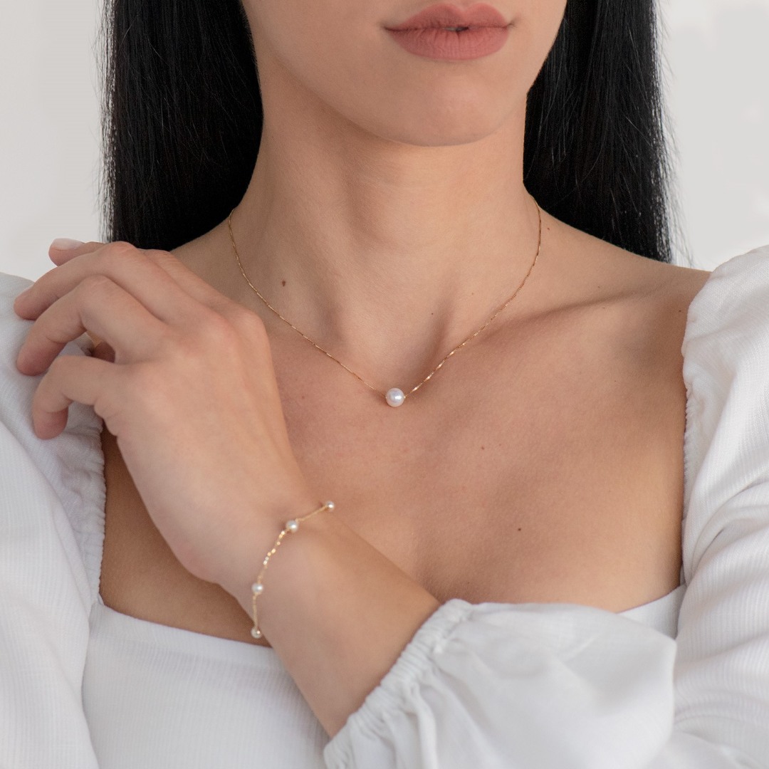 Brățară din aur galben de 14K cu Perle de apă dulce.