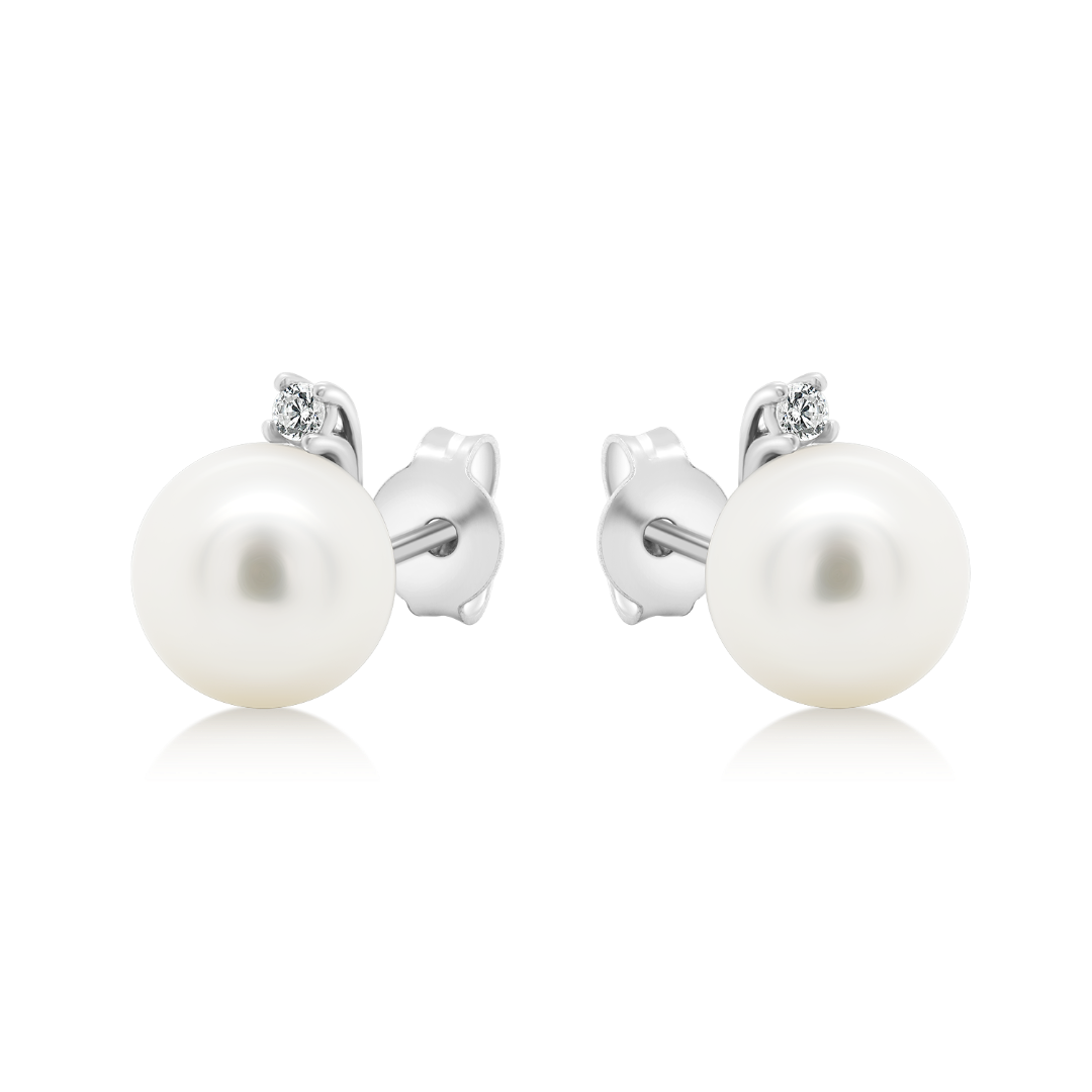 Cercei din aur alb de 14K cu pietre cubic zirconia și Perle de cultură.