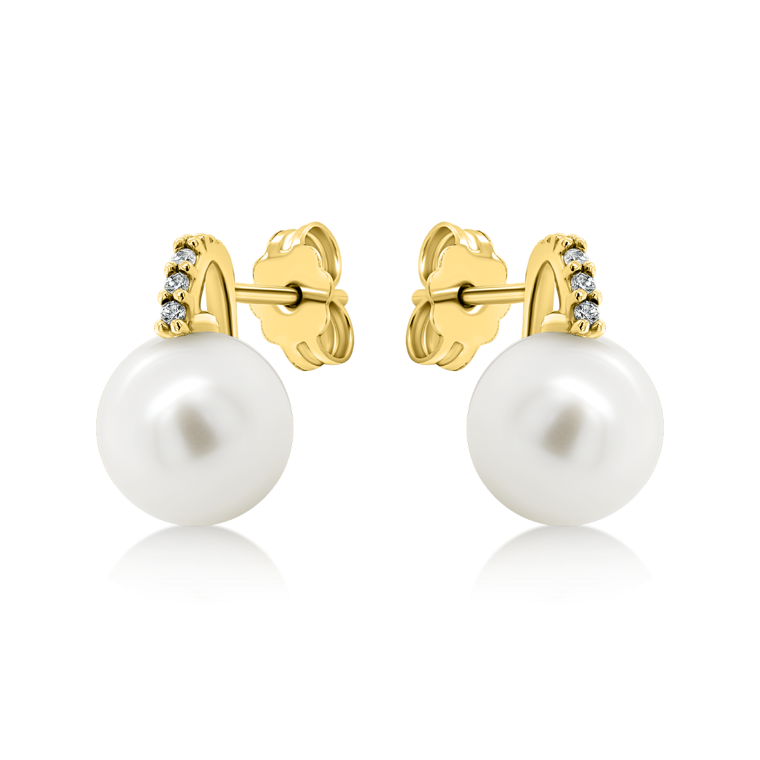 Cercei din aur galben de 14K, cu Perle de cultură și pietre cubic zirconia.