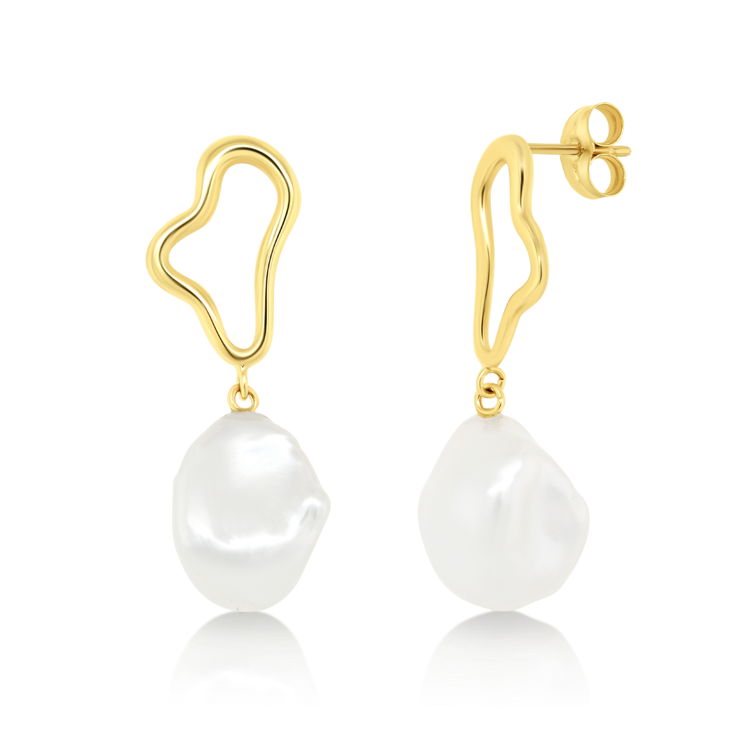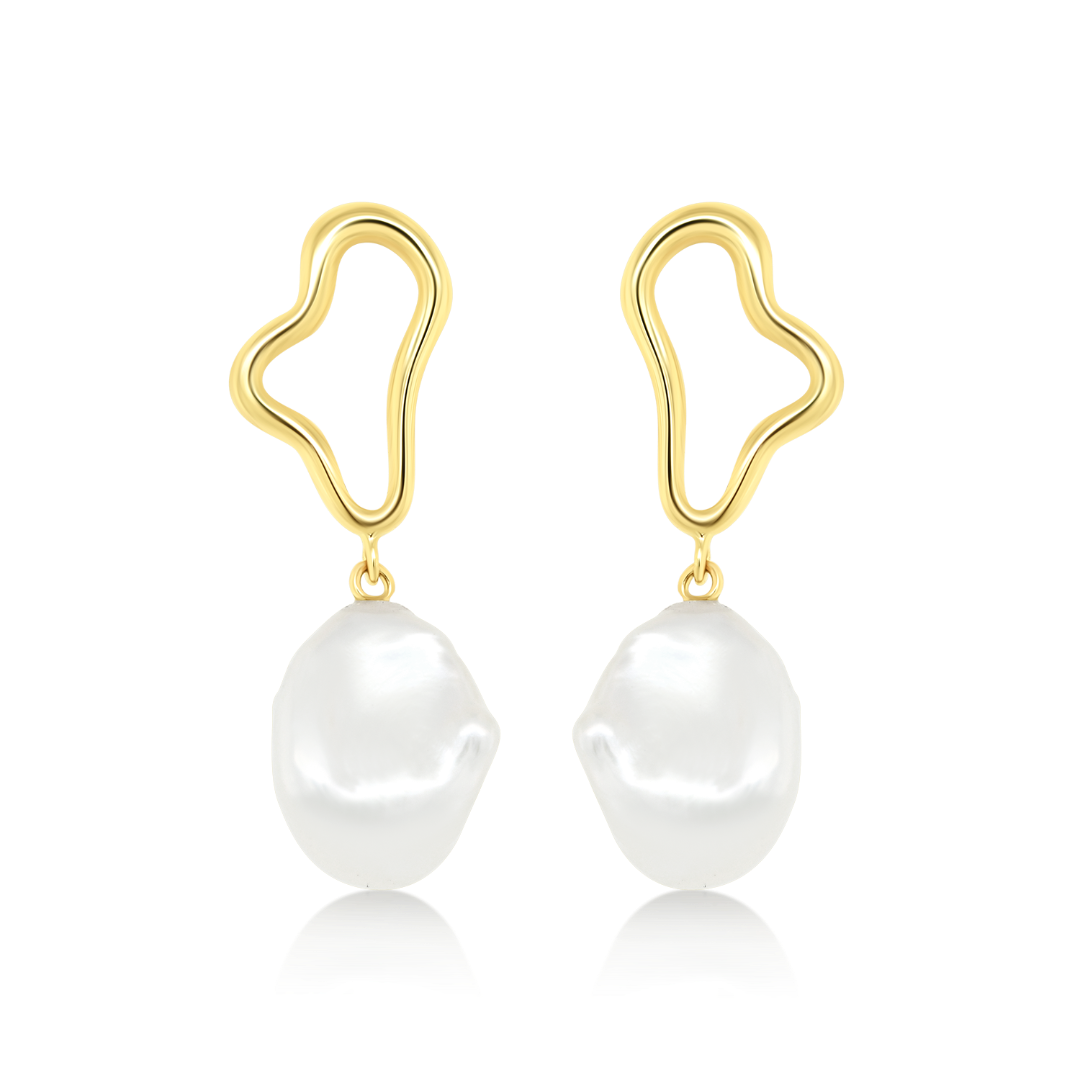 Cercei din aur galben de 14K cu Perle albe de apă dulce.