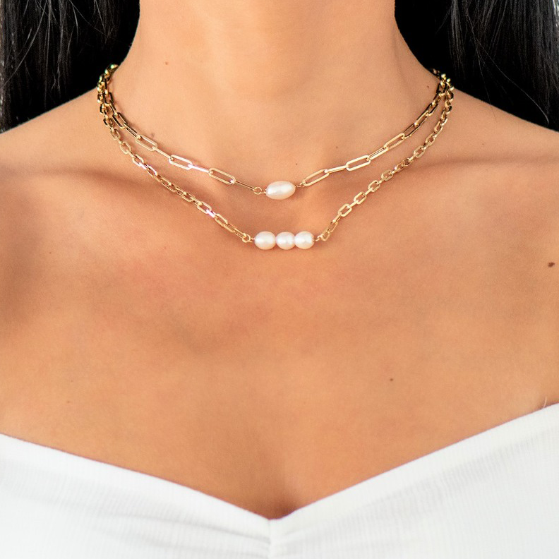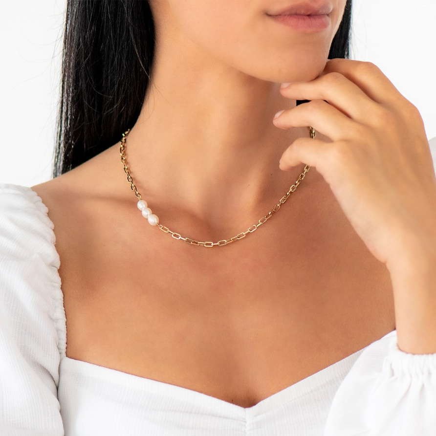 Colier din aur galben de 14K cu Perle albe de cultură.