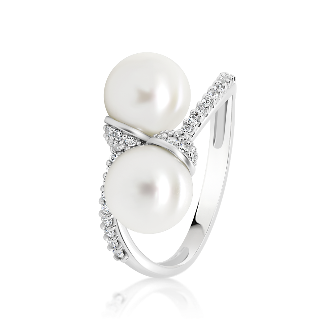 Inel din aur alb de 14K cu Perle de apă dulce, de cultură și pietre Cubic Zirconia albe.