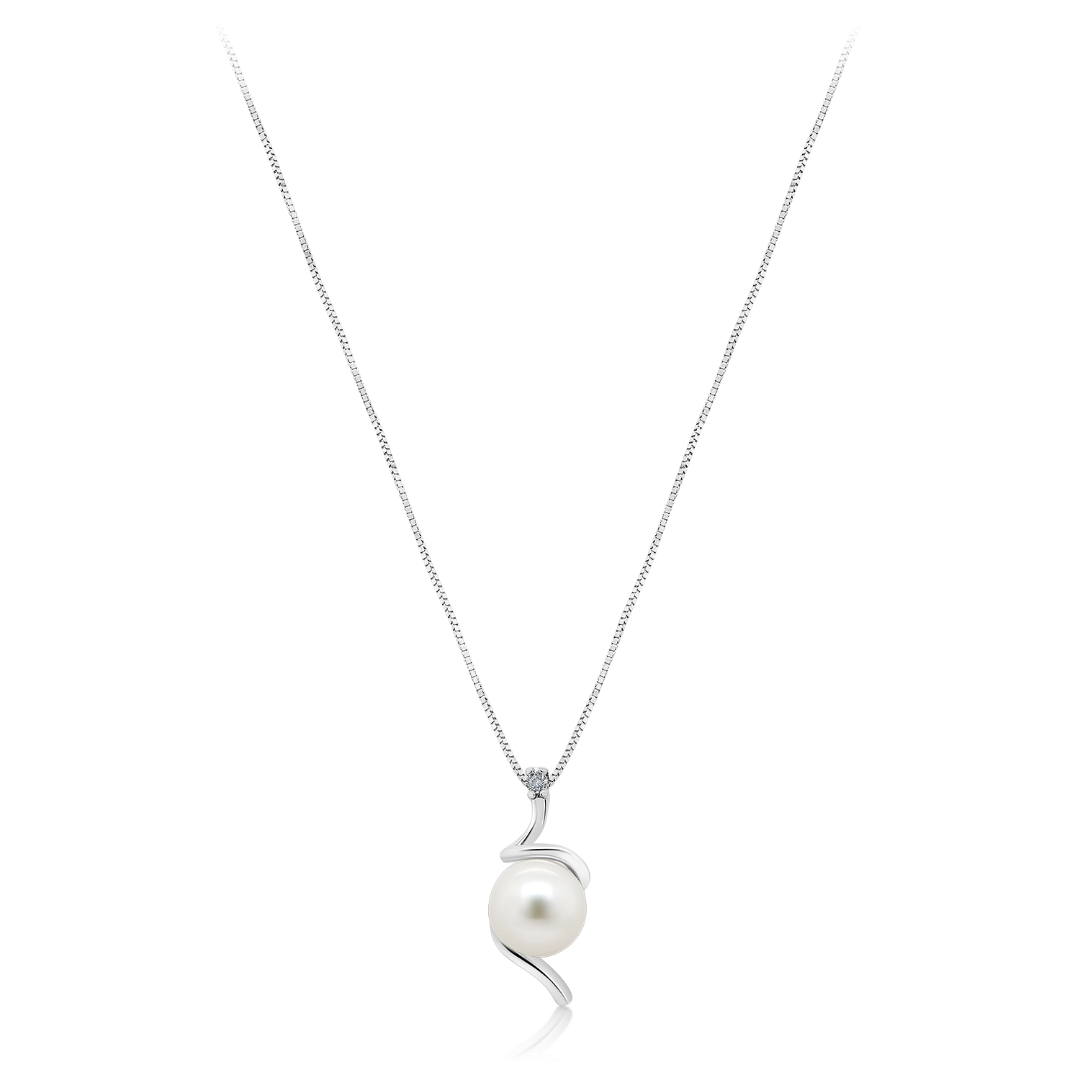 Lanț din aur alb de 14K cu Perlă