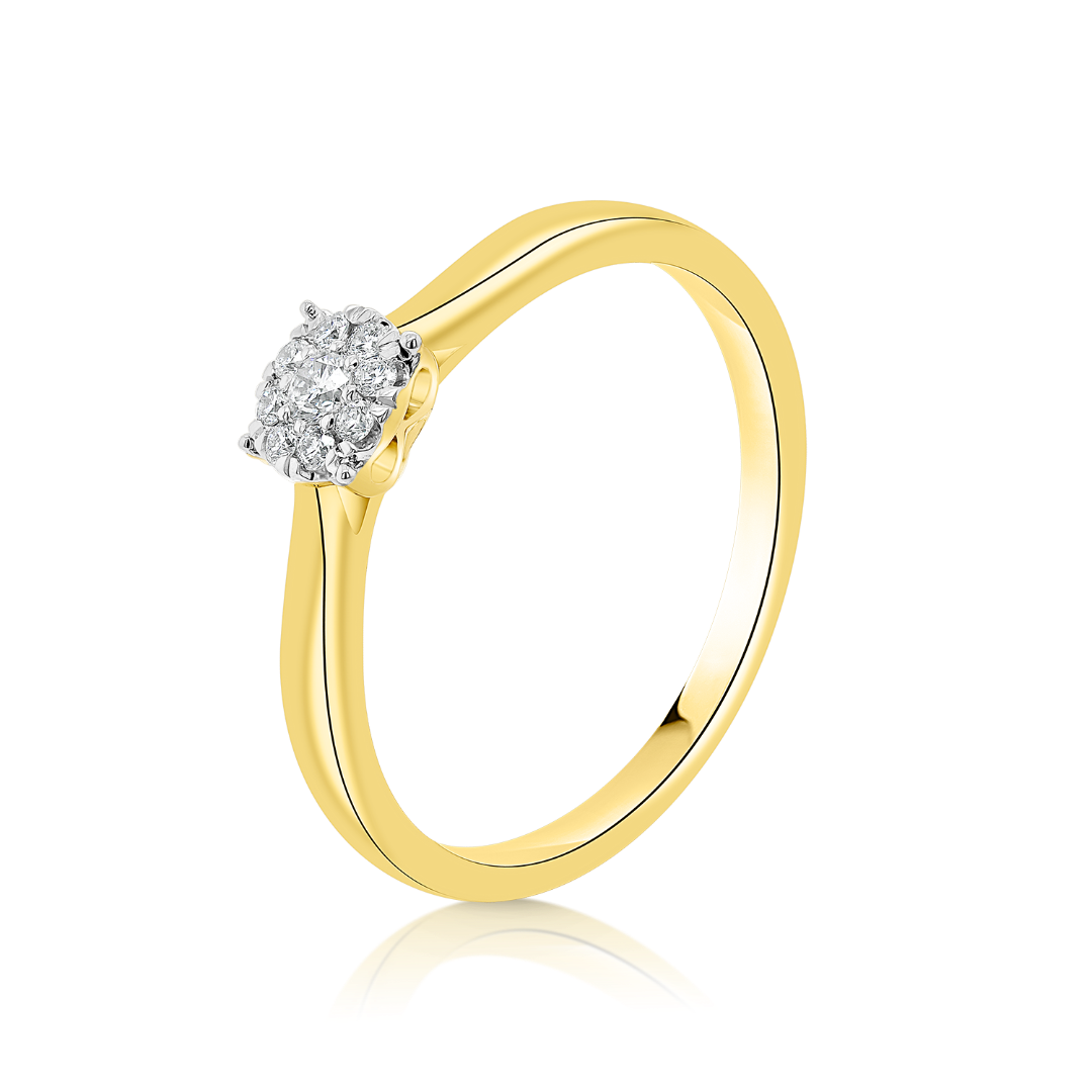 Inel din aur galben de 18K încrustat cu Diamante albe de 0.1ct.