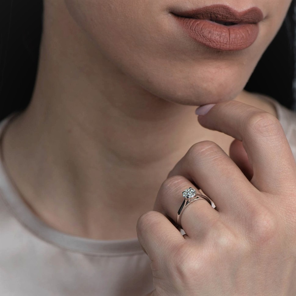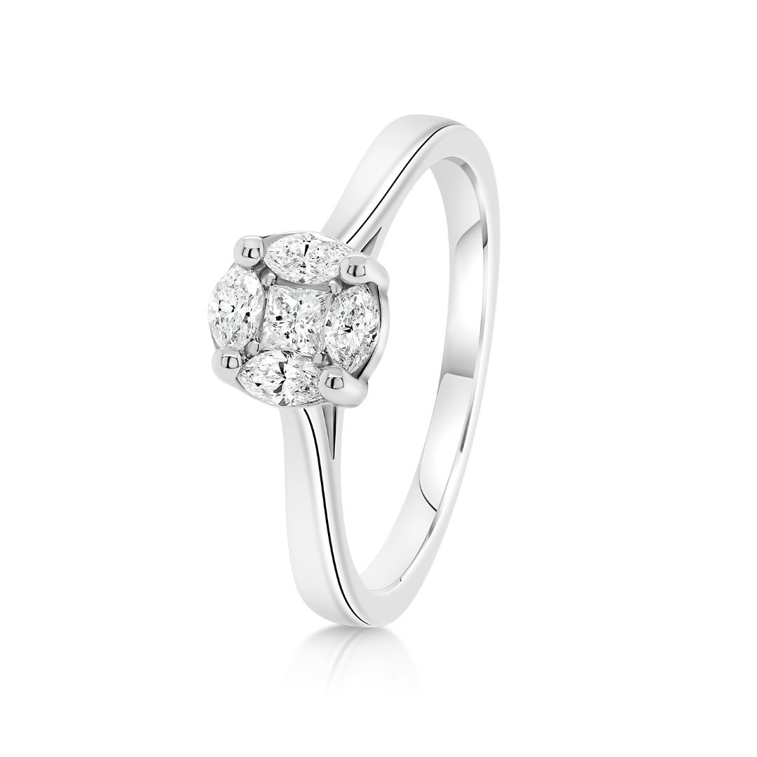 Inel din aur alb de 14K, încrustat cu 5 Diamante naturale de 0.29ct.