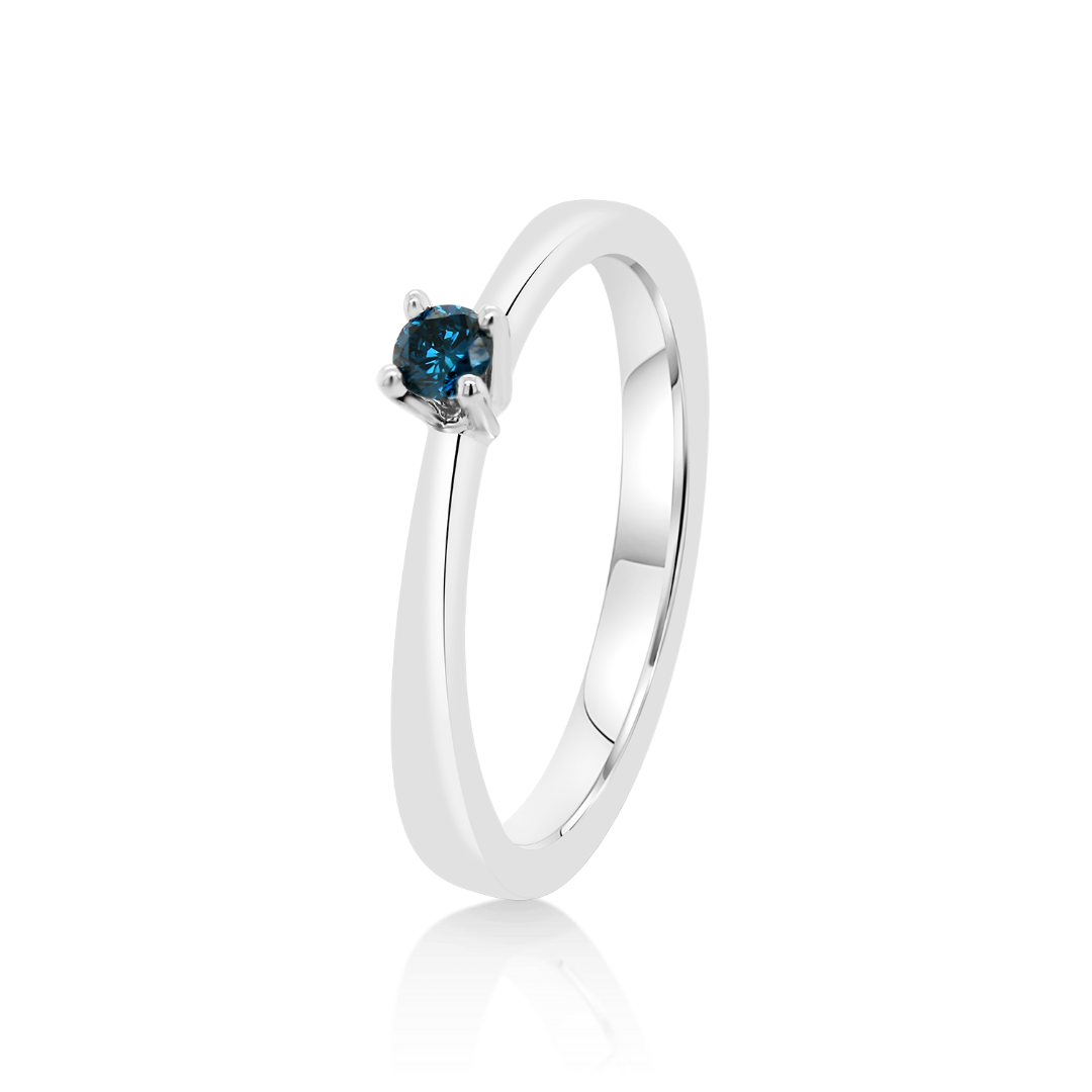 Inel din aur alb de 18K cu un Diamant albastru natural.