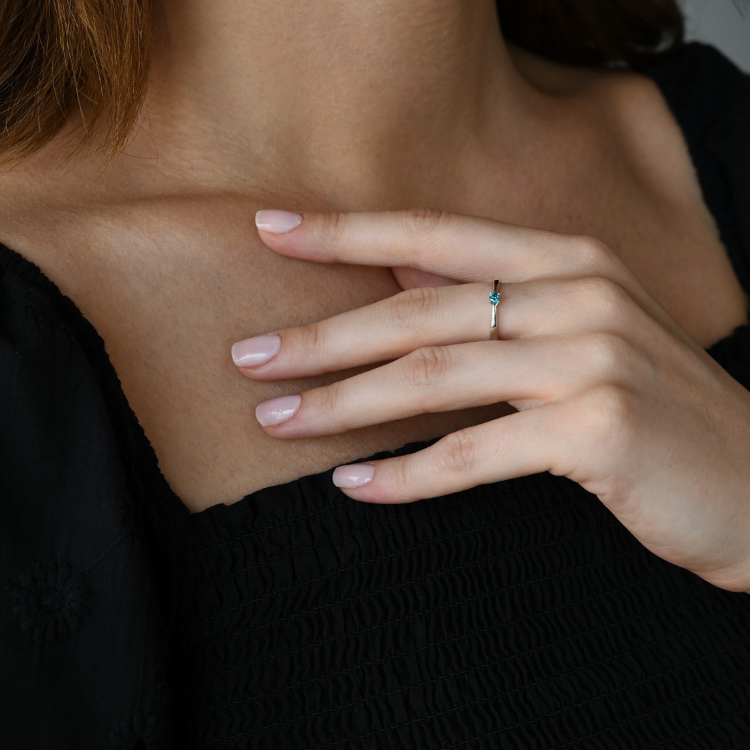 Inel din aur alb de 18K cu Diamant albastru natural