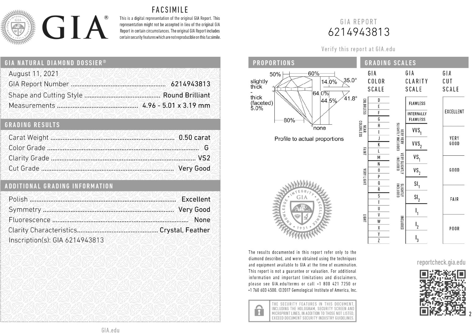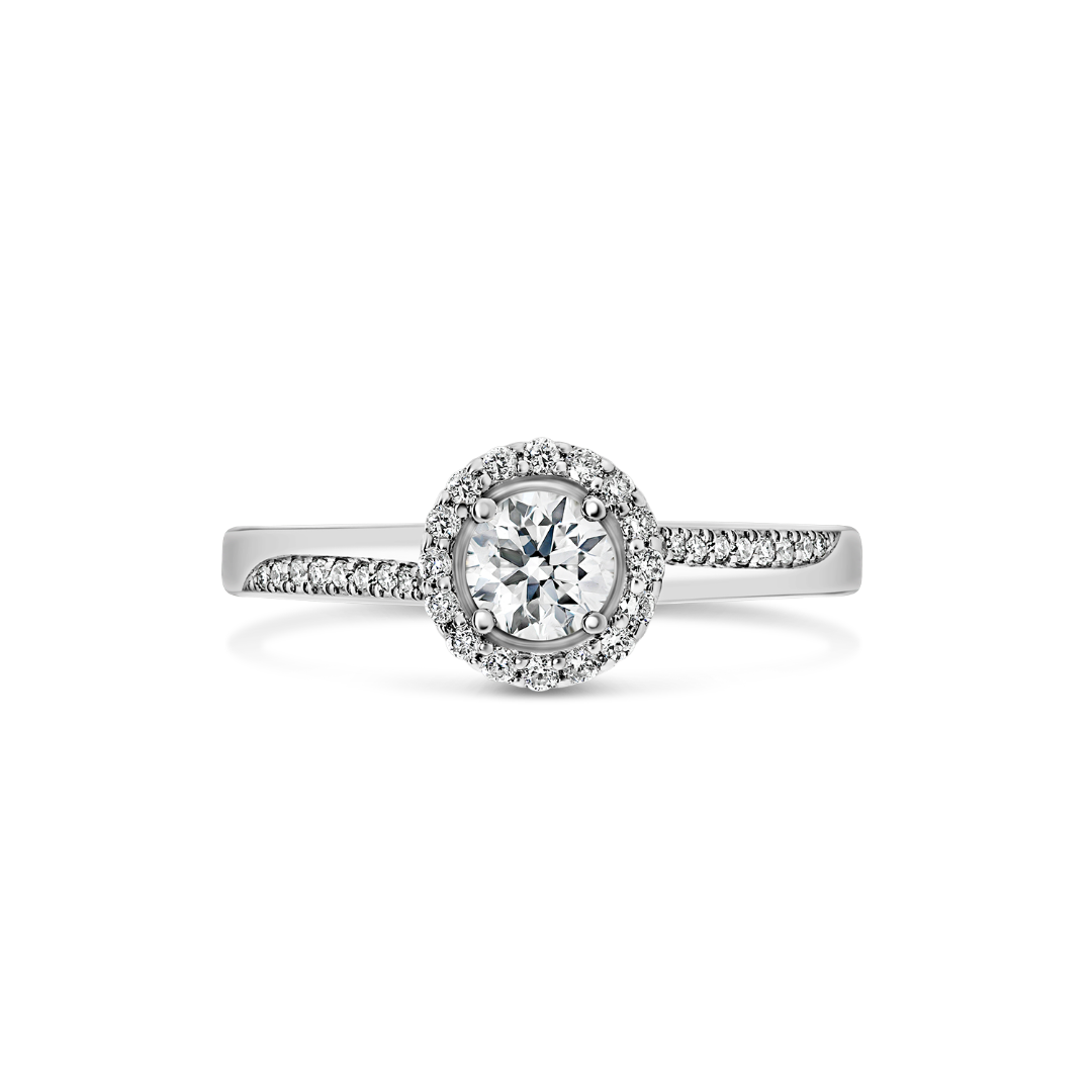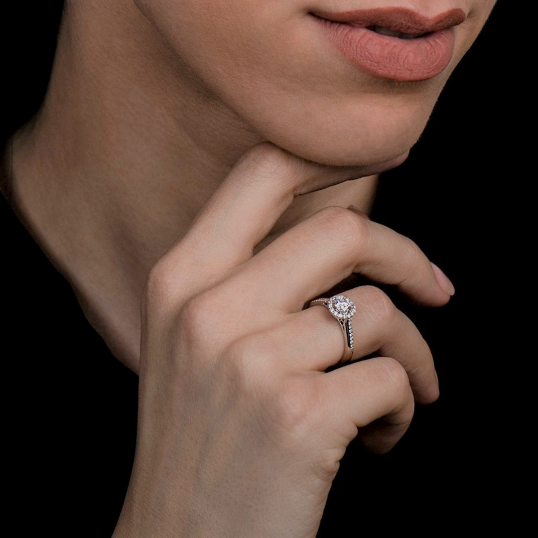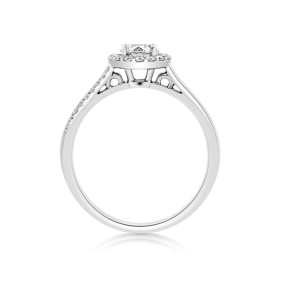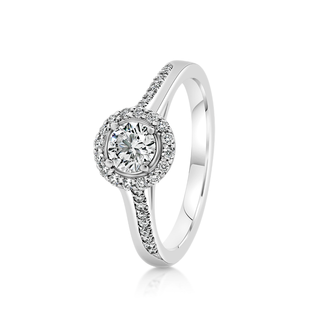Inel din aur alb de 18K cu un Diamant central Round Brilliant de 0.50ct certificat la prestigiosul Institut de Gemologie GIA cu numărul 6214943813.