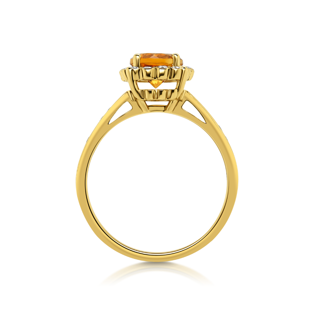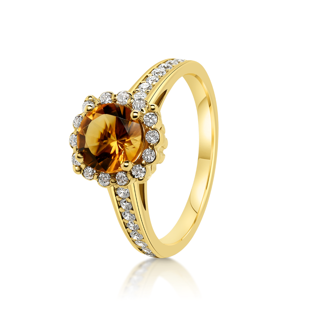Inel din aur galben de 18K, cu Diamante de 0.290ct. și o piatră centrală Citrin de 0.80ct.