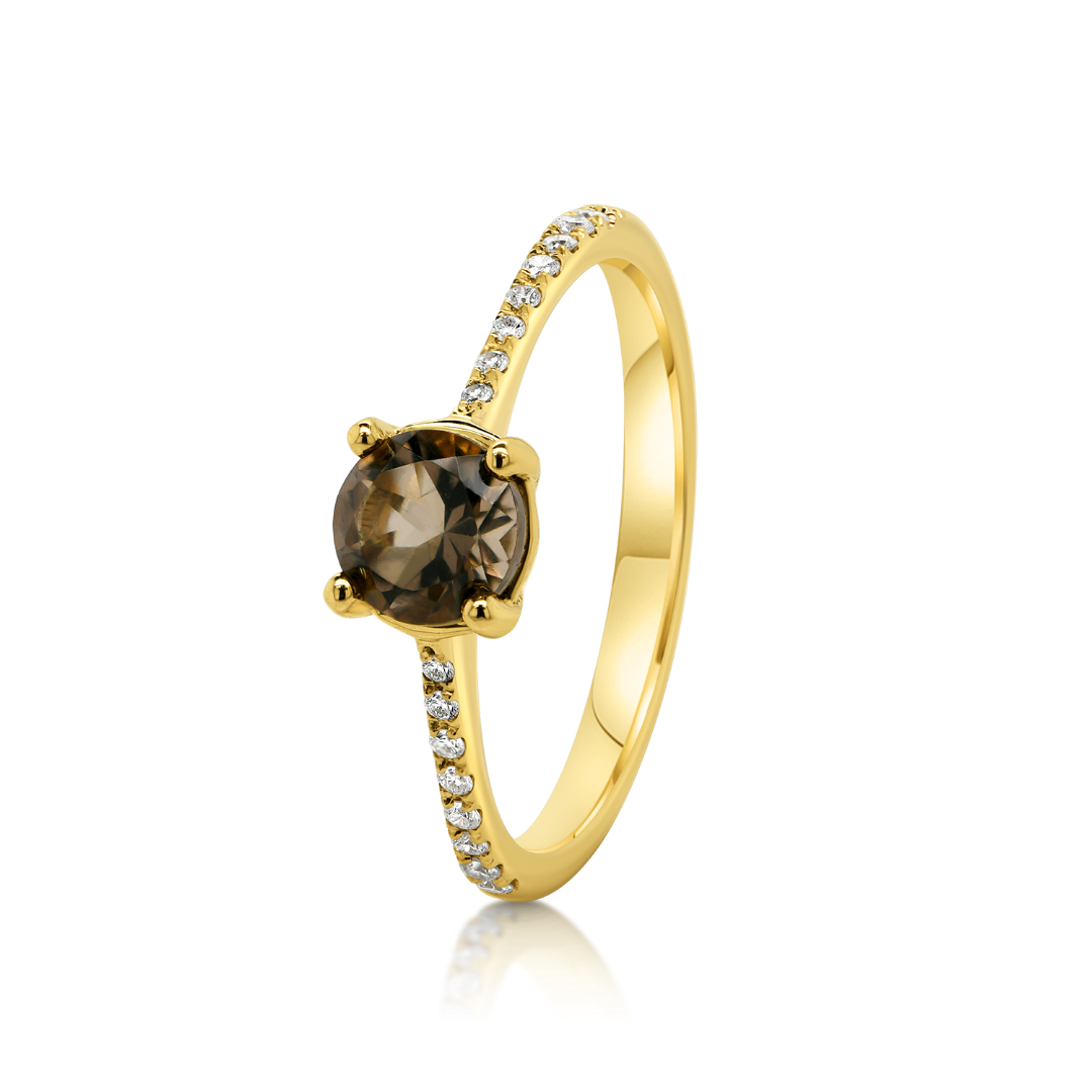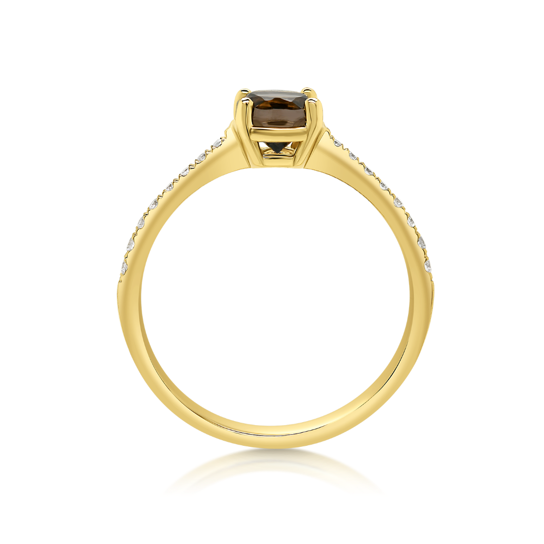 Inel din aur galben de 18K cu Diamante naturale și Smoky Quartz